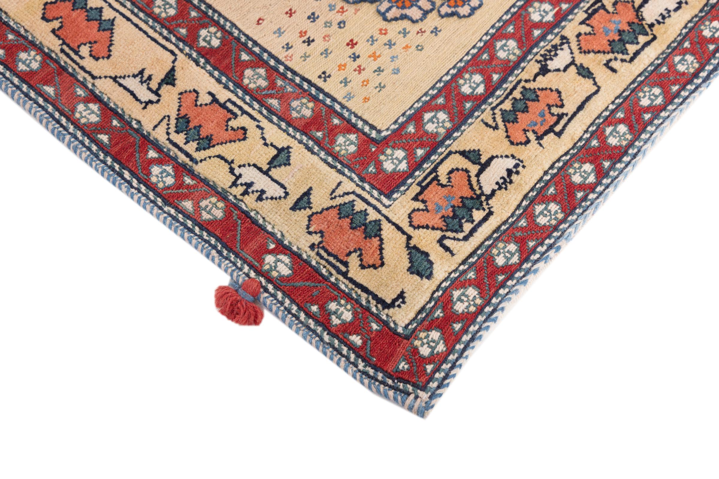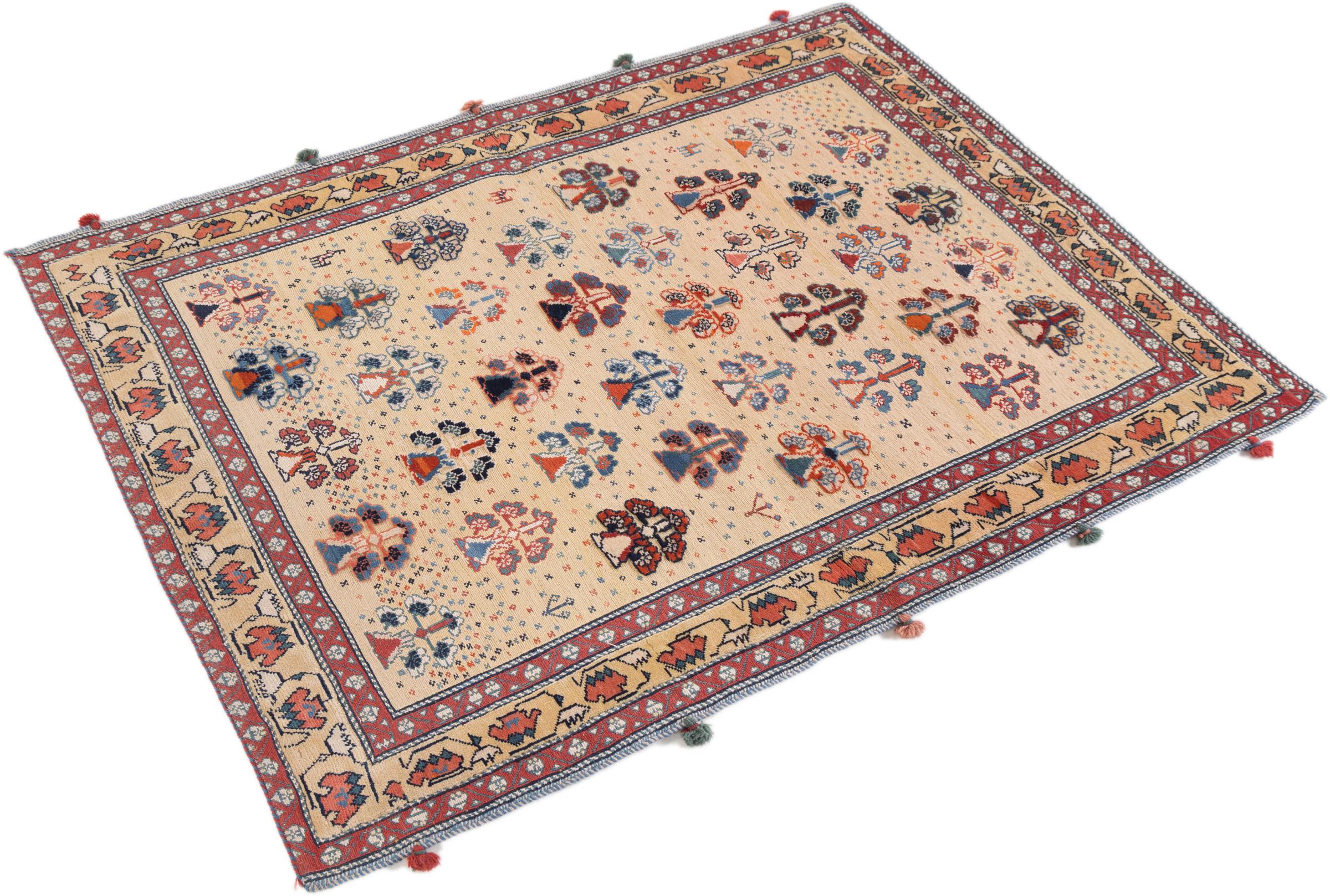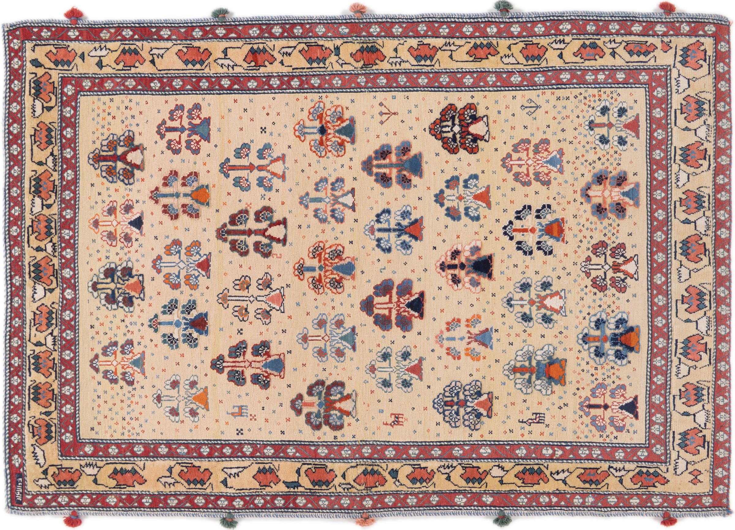 Tapijt ID: 298644006232 Grootte: 145x101 cm Dikte: ap. 8 mm Knoopdichtheid: 160 000 - 200 000 / m² Verwerking: Handgeknoopte Pool: Hand gesponnen wol Schering: Wol Oorsprong: Perzië / Iran Leeftijd: Nieuw Gewicht: ap. 4 kg Op voorraad: Uniek - Nog maar 1 op voorraad