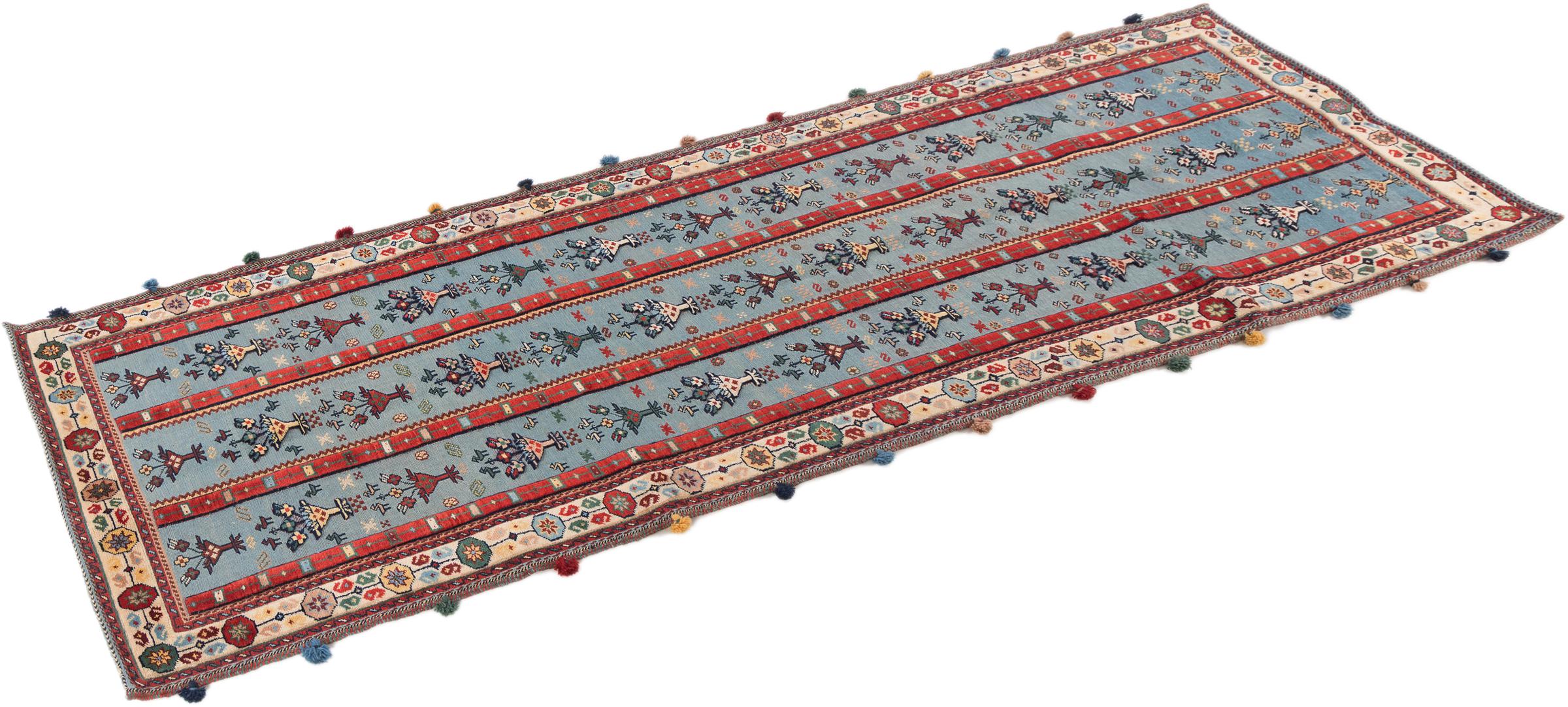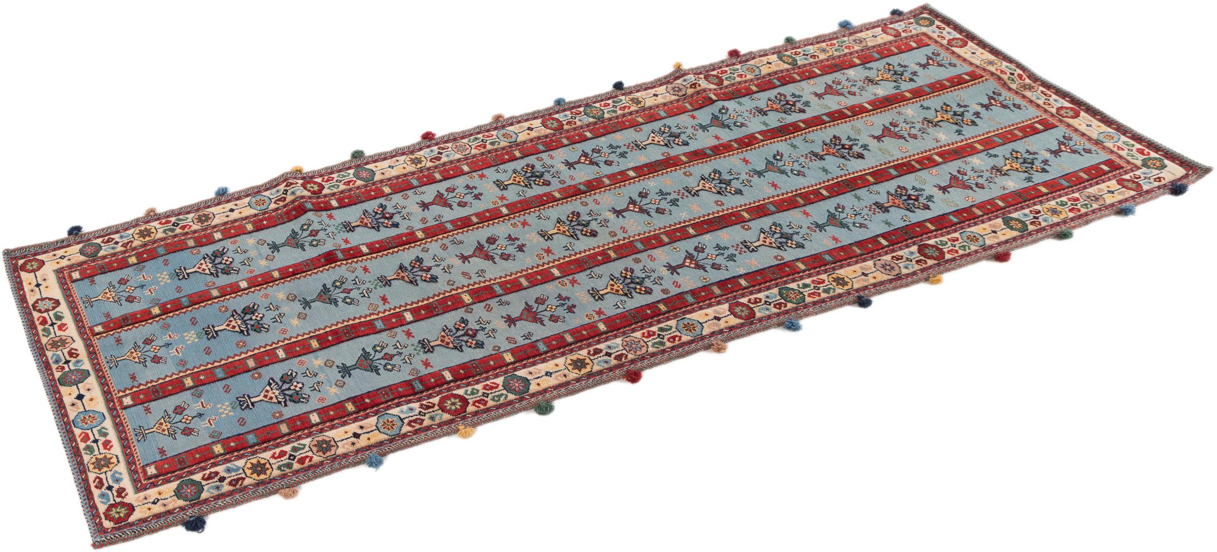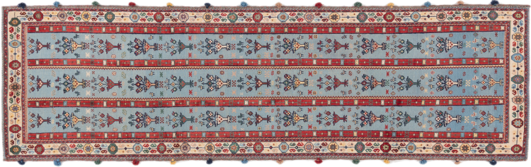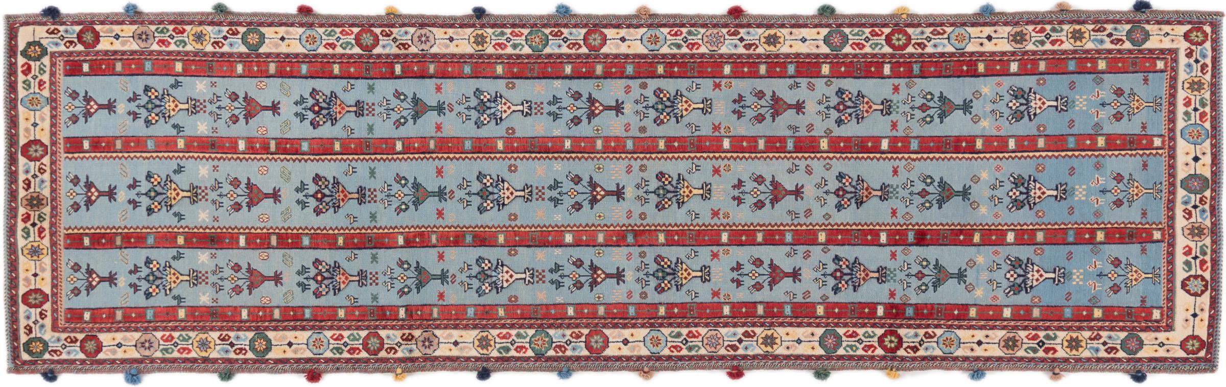 Tapijt ID: 296538007499 Grootte: 288x84 cm Dikte: ap. 8 mm Knoopdichtheid: 160 000 - 200 000 / m² Verwerking: Handgeknoopte Pool: Hand gesponnen wol Schering: Wol Oorsprong: Perzië / Iran Leeftijd: Nieuw Gewicht: ap. 7 kg Op voorraad: Uniek - Nog maar 1 op voorraad