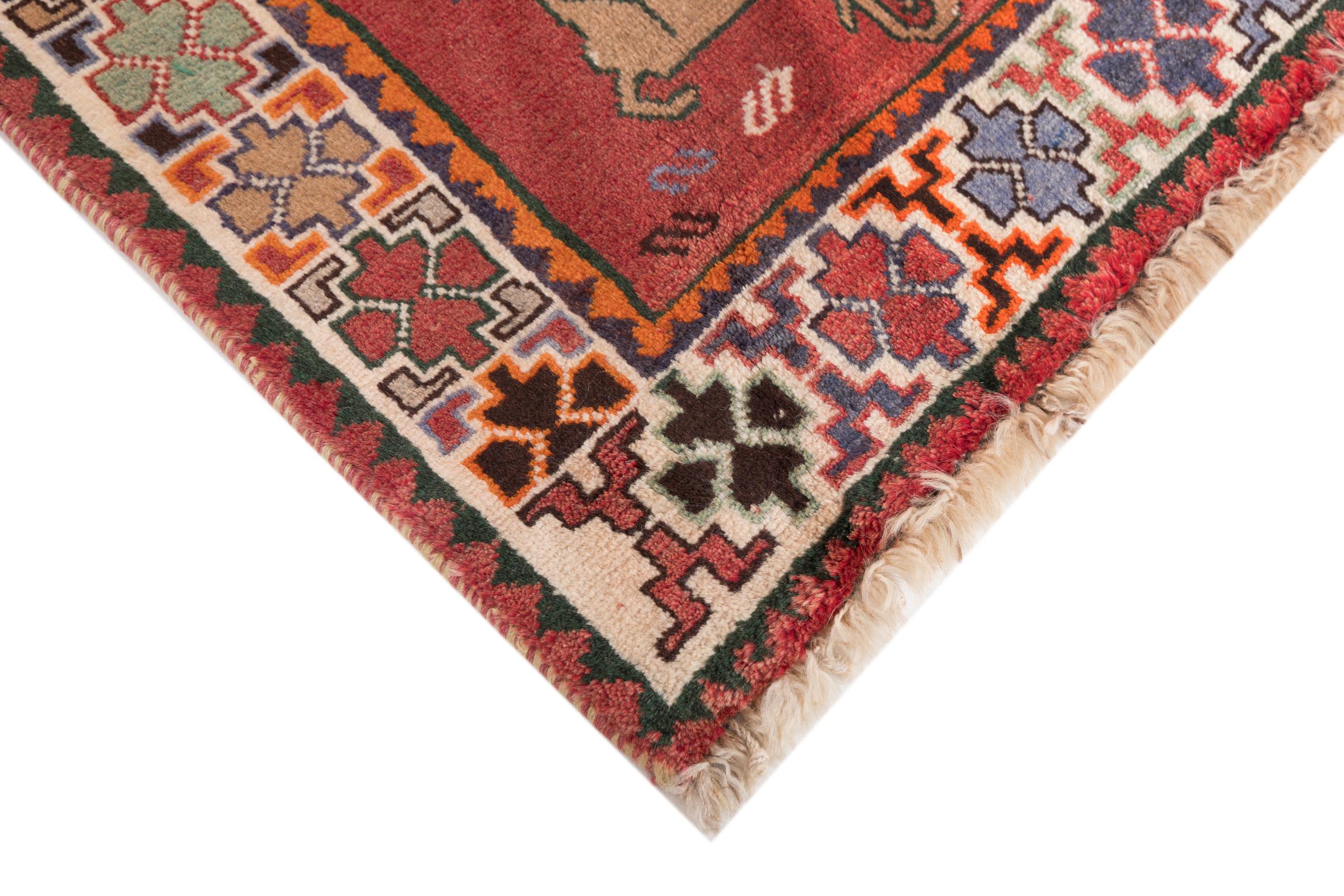 Tapijt ID: 298173005088 Grootte: 177x122 cm Dikte: ap. 15 mm Knoopdichtheid: 72 000 - 90 000 / m² Verwerking: Handgeknoopte Pool: Hand gesponnen wol Schering: Wol Oorsprong: Perzië / Iran Leeftijd: Oud/Semi antiek, boven 50 jaar Gewicht: ap. 9 kg Ook wel bekend als Gabbe, Ghabbeh Op voorraad: Uniek - Nog maar 1 op voorraad