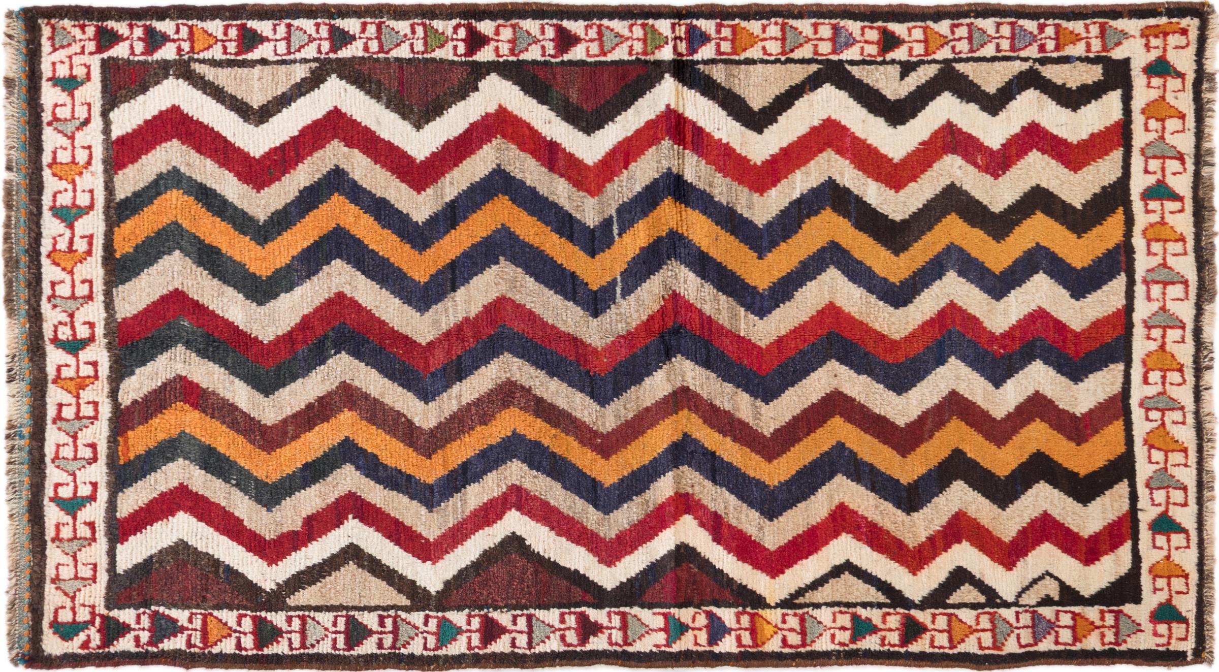 Tapijt ID: 298134007833 Grootte: 186x103 cm Dikte: ap. 15 mm Knoopdichtheid: 200 000 - 250 000 / m² Verwerking: Handgeknoopte Pool: Hand gesponnen wol Schering: Wol Oorsprong: Perzië / Iran Leeftijd: Oud/Semi antiek, boven 50 jaar Gewicht: ap. 8 kg Ook wel bekend als Gabbe, Ghabbeh Op voorraad: Uniek - Nog maar 1 op voorraad