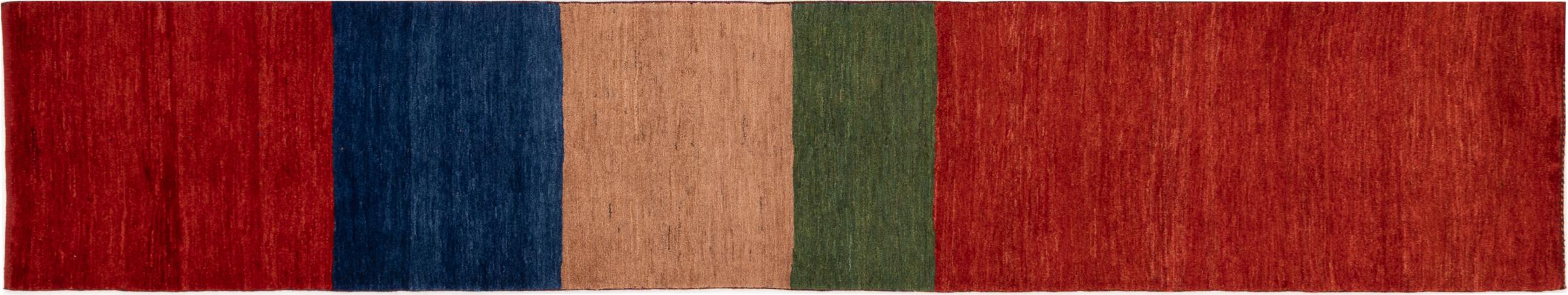 Tapijt ID: 302640008586283 Grootte: 401x75 cm Dikte: ap. 15 mm Knoopdichtheid: 72 000 - 90 000 / m² Verwerking: Handgeknoopte Pool: Hand gesponnen wol Schering: Wol Oorsprong: Perzië / Iran Leeftijd: Nieuw Gewicht: ap. 12 kg Ook wel bekend als Gabbe, Kashkuli Op voorraad: Uniek - Nog maar 1 op voorraad
