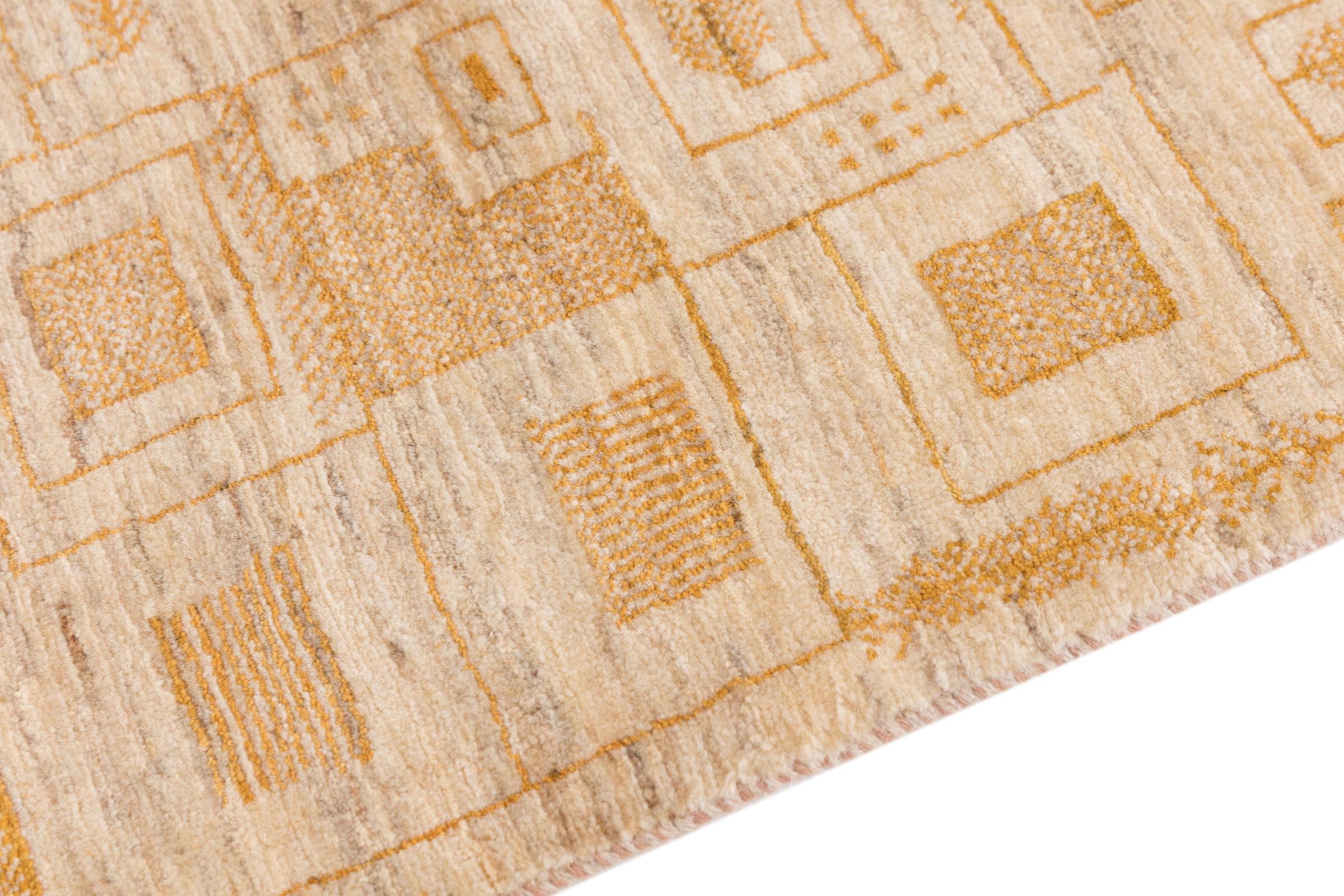 Dit tapijt is gemaakt van handgesponnen schapenwol van de hoogste kwaliteit. Vooral in Iran (voormalig Perzië), Afghanistan en Pakistan wordt de wol nog met de hand gesponnen voordat het eigenlijke knopen van het tapijt begint. Wol heeft zich door de eeuwen heen bewezen als een natuurlijk en extreem slijtvast materiaal. Het heeft onder andere vuilafstotende en warmte-isolerende eigenschappen. Tegelijkertijd is wol onvergelijkbaar zacht en heeft het een natuurlijke glans.
