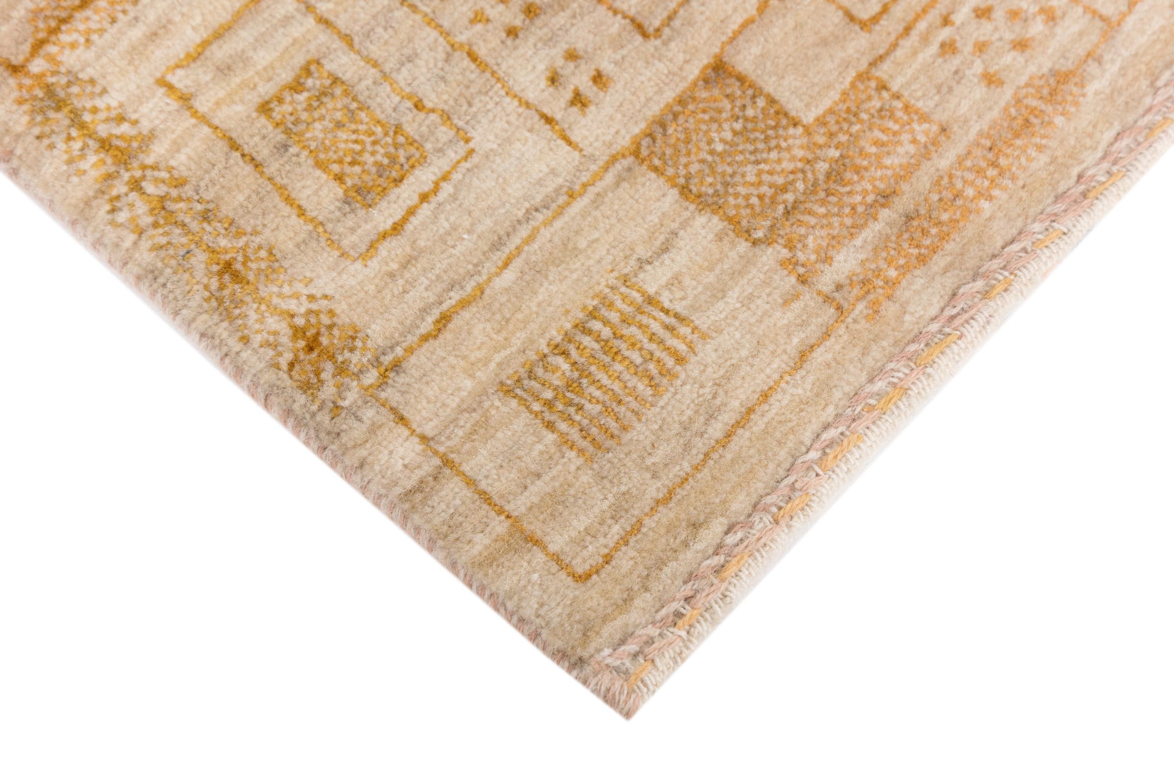 Dit prachtige tapijt is een Perzisch Gabbeh-tapijt en behoort daarom tot de hoogste kwaliteit Gabbeh-tapijten. De tapijten worden geknoopt door nomaden of semi-nomaden in Iran volgens traditioneel vakmanschap. De eenvoudige motieven en patronen zijn vooral geïnspireerd op de directe omgeving van de nomaden. Zo zijn er bijvoorbeeld kamelen, bomen of struiken te vinden op de traditionele tapijten. De Perzische Gabbeh-tapijten zijn gemaakt van wol van lokaal opgefokte kuddes schapen. De wol wordt dus meestal nog met de hand gesponnen. Elk van deze oosterse tapijten belichaamt dus een uniek karakter van de eeuwenoude cultuur.
