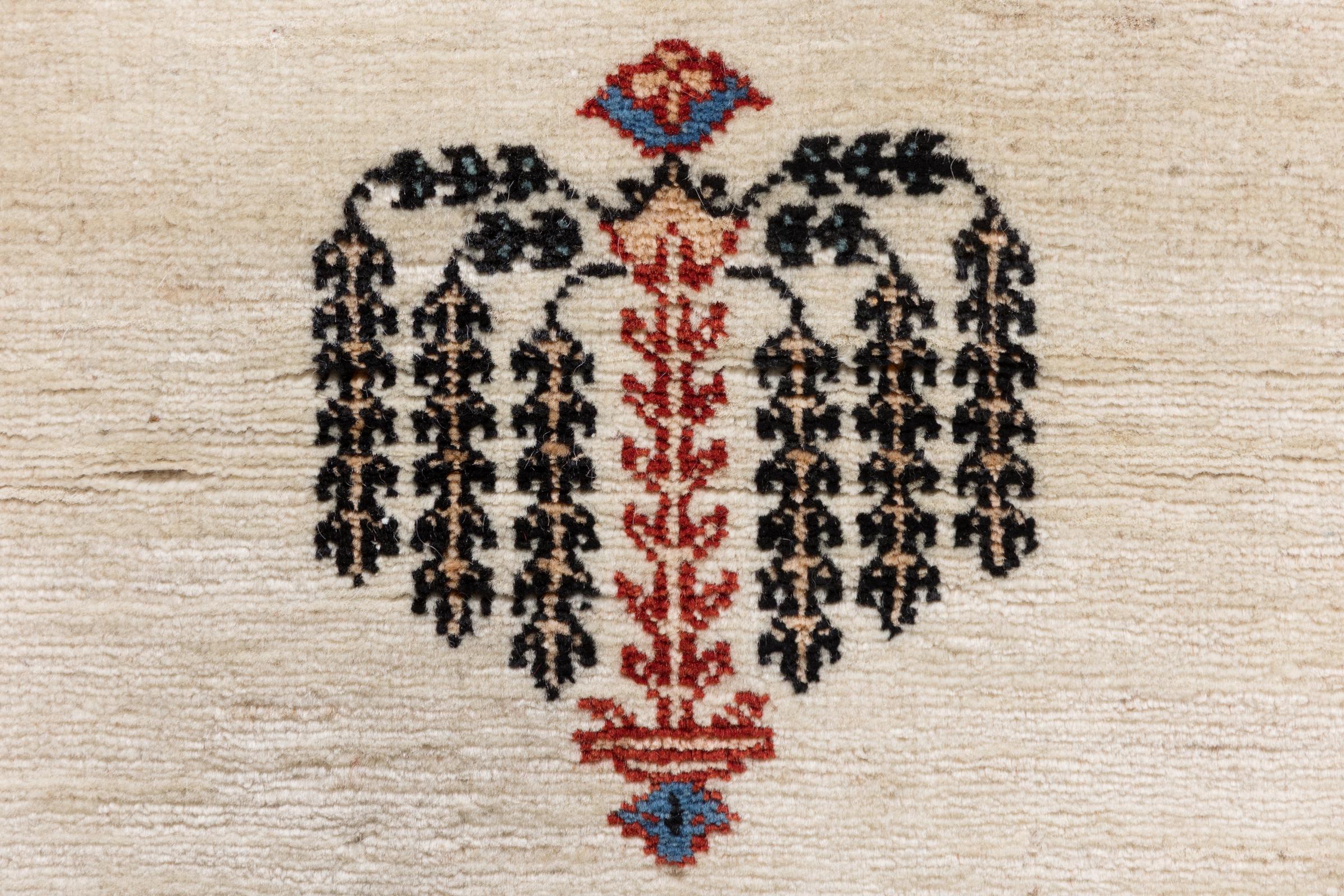Dit prachtige tapijt is een Perzisch Gabbeh-tapijt en behoort daarom tot de hoogste kwaliteit Gabbeh-tapijten. De tapijten worden geknoopt door nomaden of semi-nomaden in Iran volgens traditioneel vakmanschap. De eenvoudige motieven en patronen zijn vooral geïnspireerd op de directe omgeving van de nomaden. Zo zijn er bijvoorbeeld kamelen, bomen of struiken te vinden op de traditionele tapijten. De Perzische Gabbeh-tapijten zijn gemaakt van wol van lokaal opgefokte kuddes schapen. De wol wordt dus meestal nog met de hand gesponnen. Elk van deze oosterse tapijten belichaamt dus een uniek karakter van de eeuwenoude cultuur.