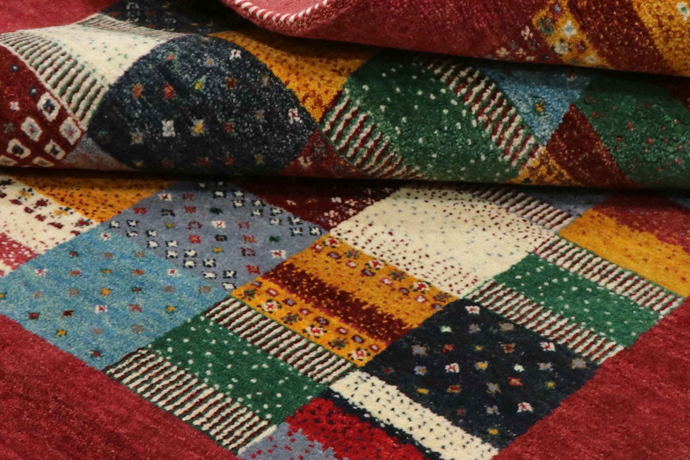 Een verfijning van de al bekende Gabbeh-tapijten: Dit is deze Perzische Gabbeh Loribaft. Het weet indruk te maken met zijn fijnere weefsel en prachtige ontwerp. Het werd door Loren in het zuiden van Perzië met de hand geknoopt van de beste handgesponnen schapenwol. Voor het verven van de wol worden uitsluitend pure plantaardige kleurstoffen gebruikt. Met dit vloerkleed haal je de hoogste standaard van een Gabbeh-tapijt in huis.