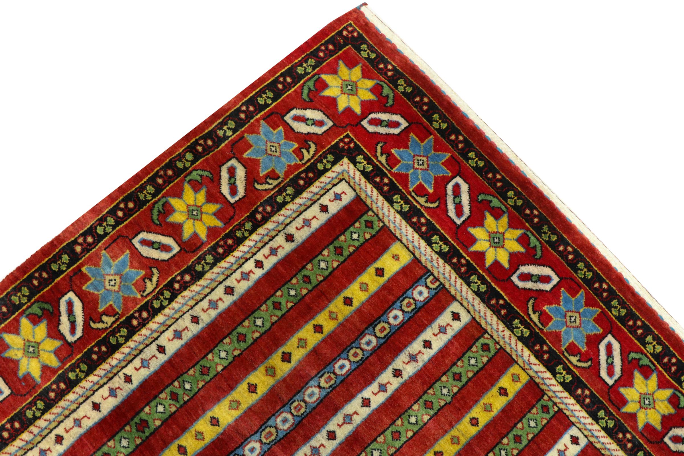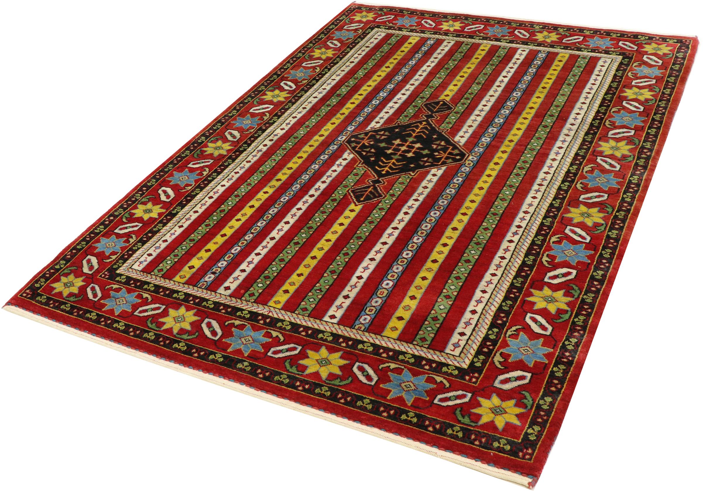 Een verfijning van de al bekende Gabbeh-tapijten: Dit is deze Perzische Gabbeh Loribaft. Het weet indruk te maken met zijn fijnere weefsel en prachtige ontwerp. Het werd door Loren in het zuiden van Perzië met de hand geknoopt van de beste handgesponnen schapenwol. Voor het verven van de wol worden uitsluitend pure plantaardige kleurstoffen gebruikt. Met dit vloerkleed haal je de hoogste standaard van een Gabbeh-tapijt in huis.