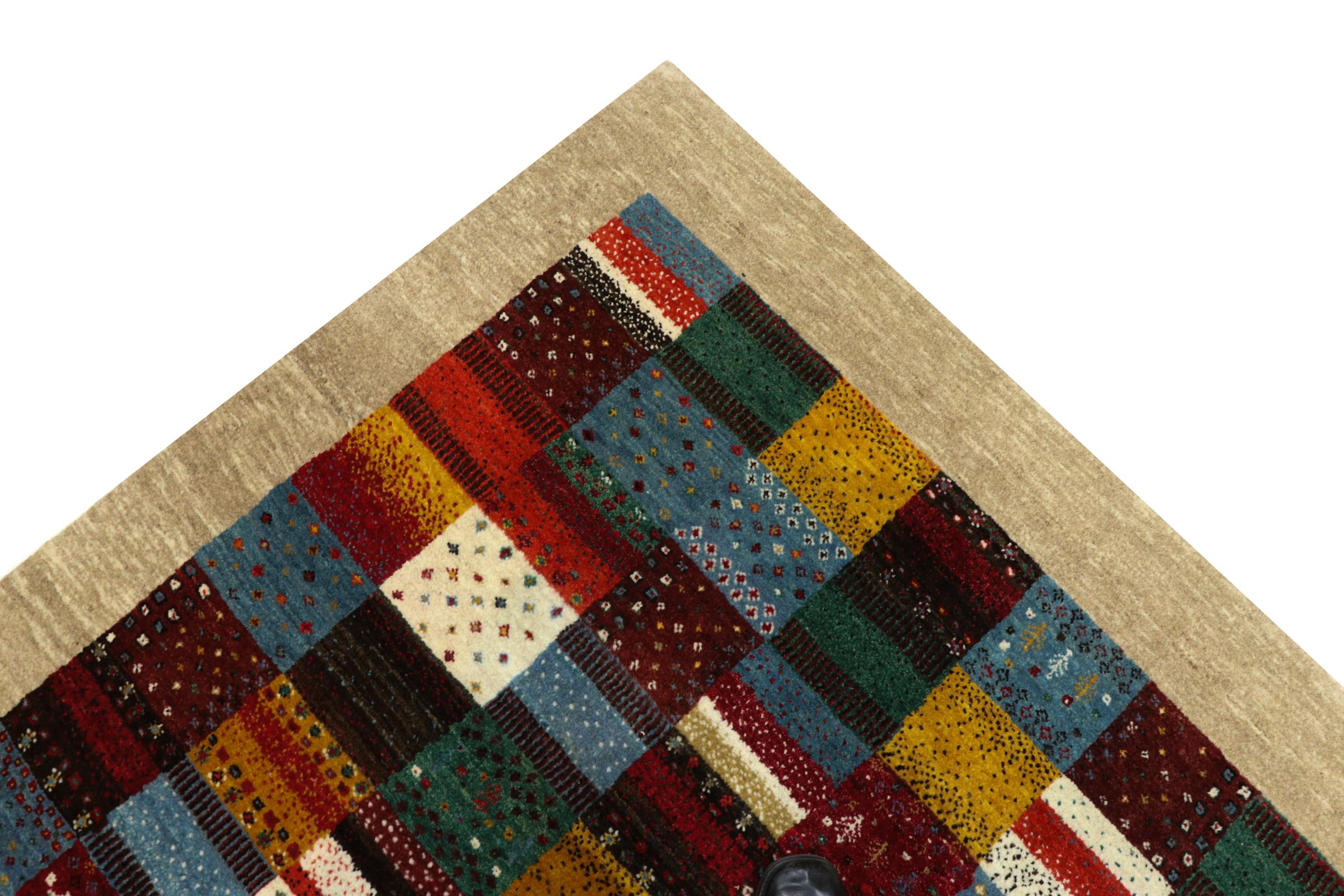 Een verfijning van de al bekende Gabbeh-tapijten: Dit is deze Perzische Gabbeh Loribaft. Het weet indruk te maken met zijn fijnere weefsel en prachtige ontwerp. Het werd door Loren in het zuiden van Perzië met de hand geknoopt van de beste handgesponnen schapenwol. Voor het verven van de wol worden uitsluitend pure plantaardige kleurstoffen gebruikt. Met dit vloerkleed haal je de hoogste standaard van een Gabbeh-tapijt in huis.