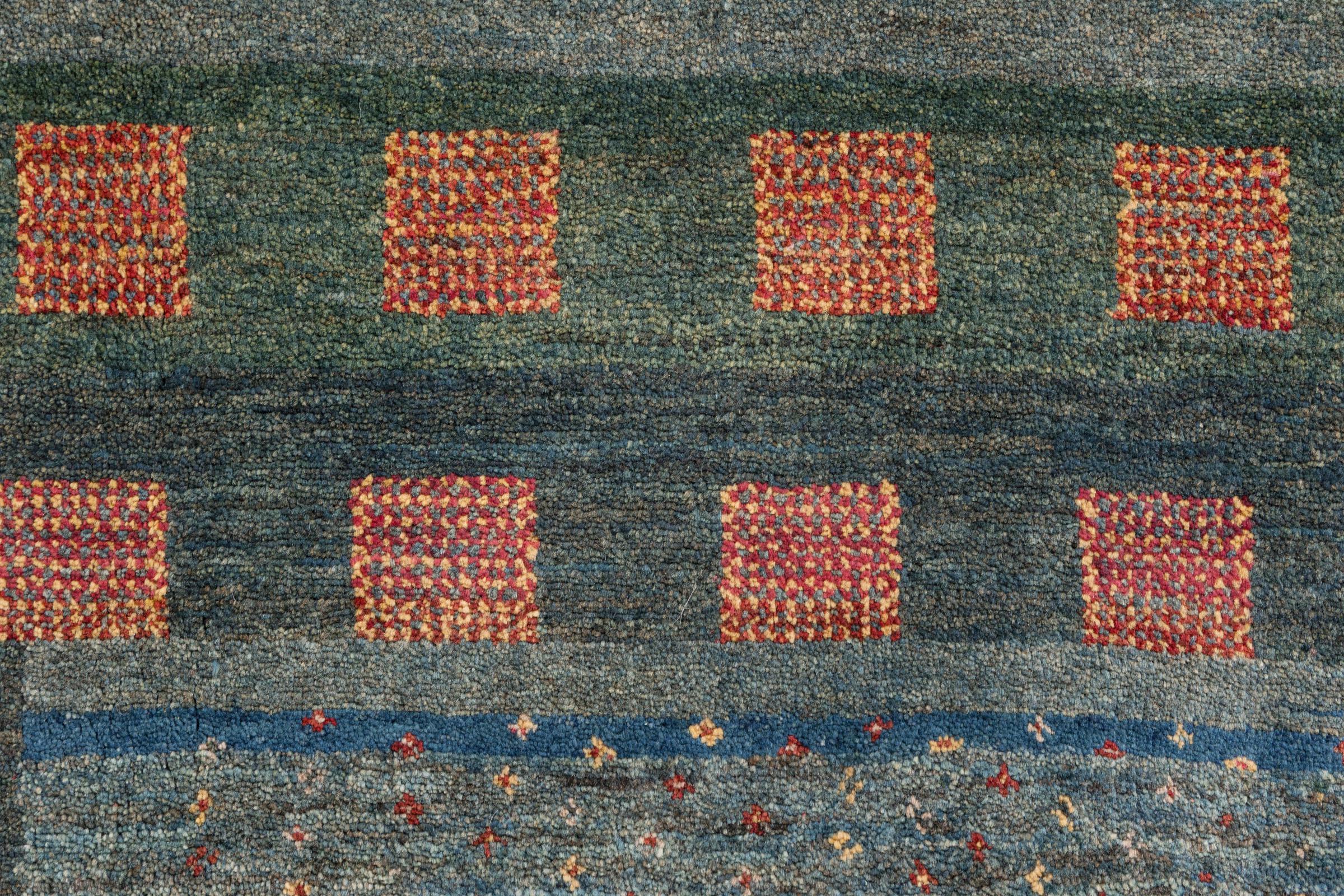 Een verfijning van de al bekende Gabbeh-tapijten: Dit is deze Perzische Gabbeh Loribaft. Het weet indruk te maken met zijn fijnere weefsel en prachtige ontwerp. Het werd door Loren in het zuiden van Perzië met de hand geknoopt van de beste handgesponnen schapenwol. Voor het verven van de wol worden uitsluitend pure plantaardige kleurstoffen gebruikt. Met dit vloerkleed haal je de hoogste standaard van een Gabbeh-tapijt in huis.