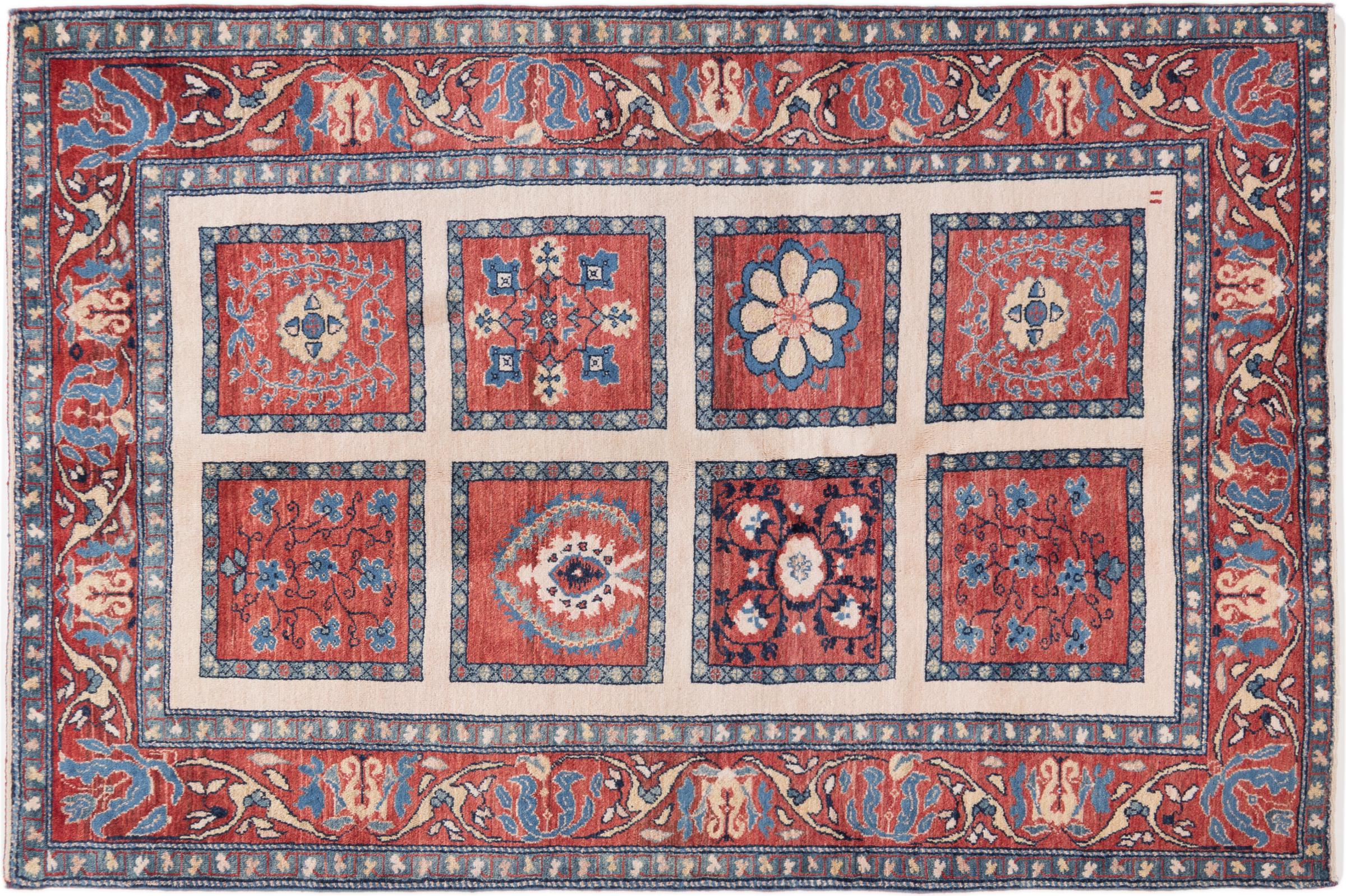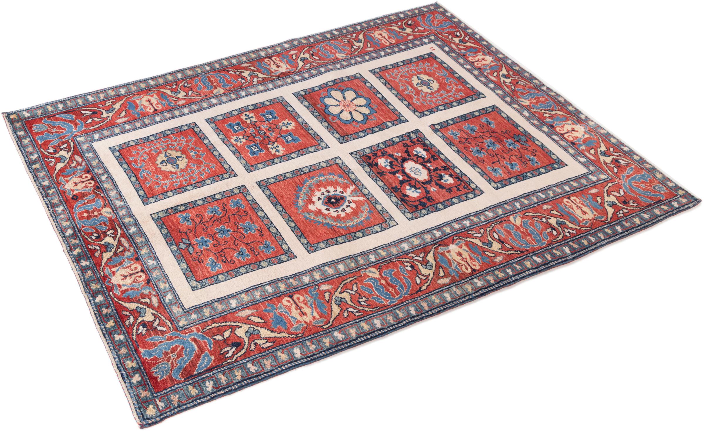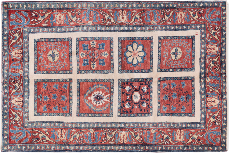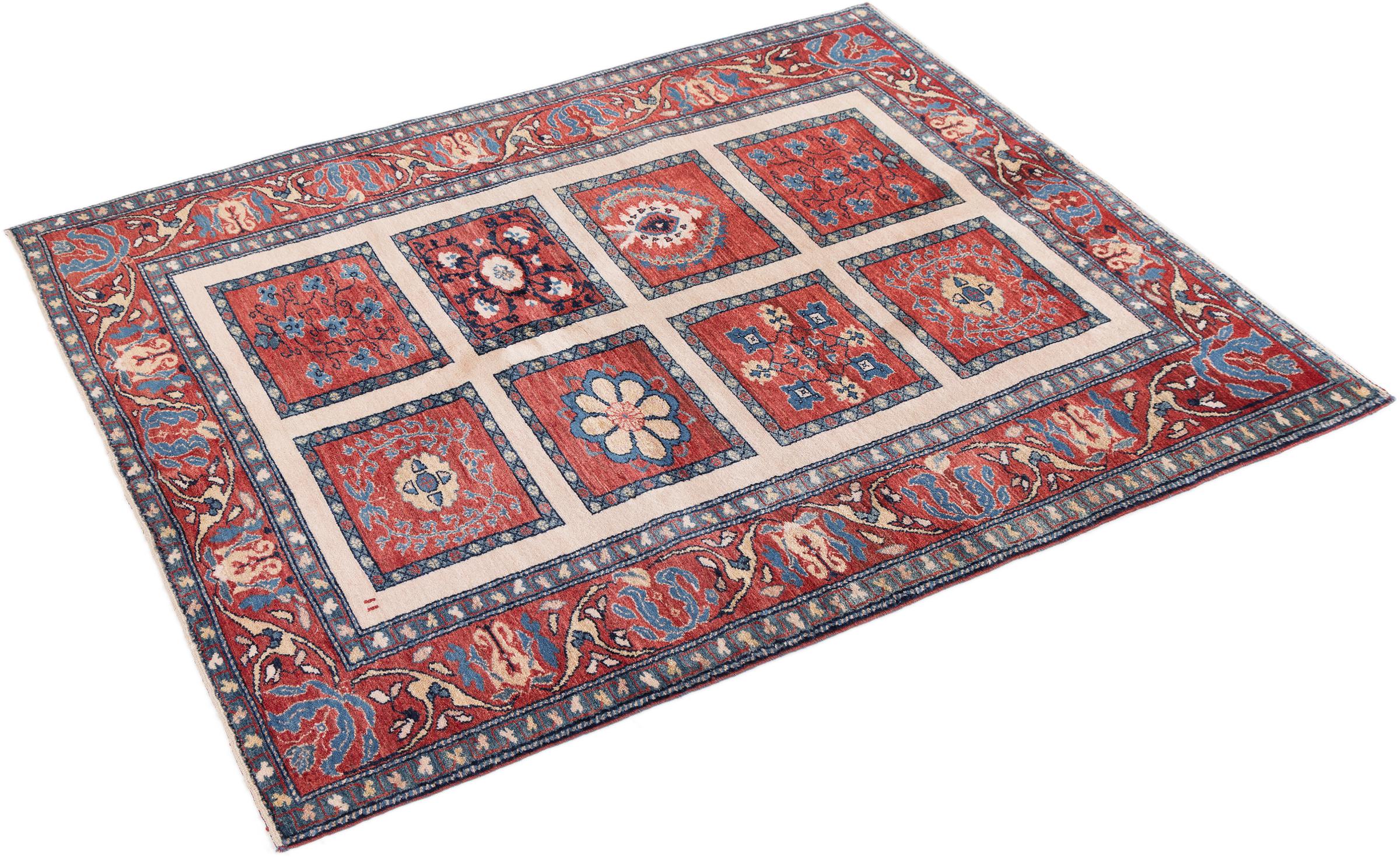Tapijt ID: 298032006306 Grootte: 185x124 cm Dikte: ap. 12 mm Knoopdichtheid: 200 000 - 250 000 / m² Verwerking: Handgeknoopte Pool: Hand gesponnen wol Schering: Wol Oorsprong: Perzië / Iran Leeftijd: Nieuw Gewicht: ap. 8 kg Op voorraad: Uniek - Nog maar 1 op voorraad