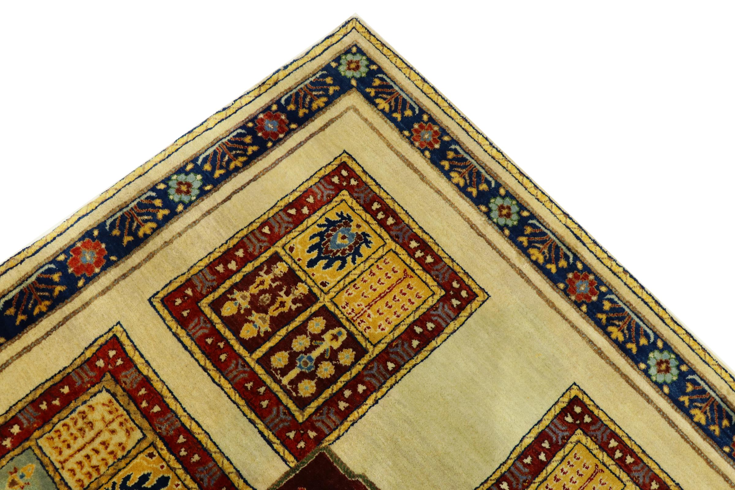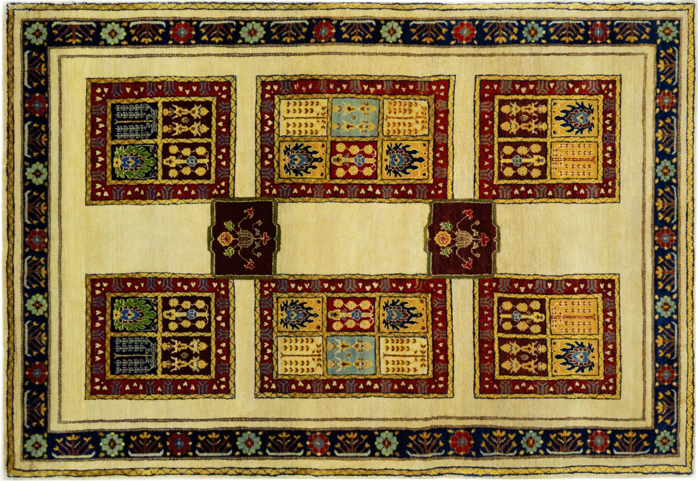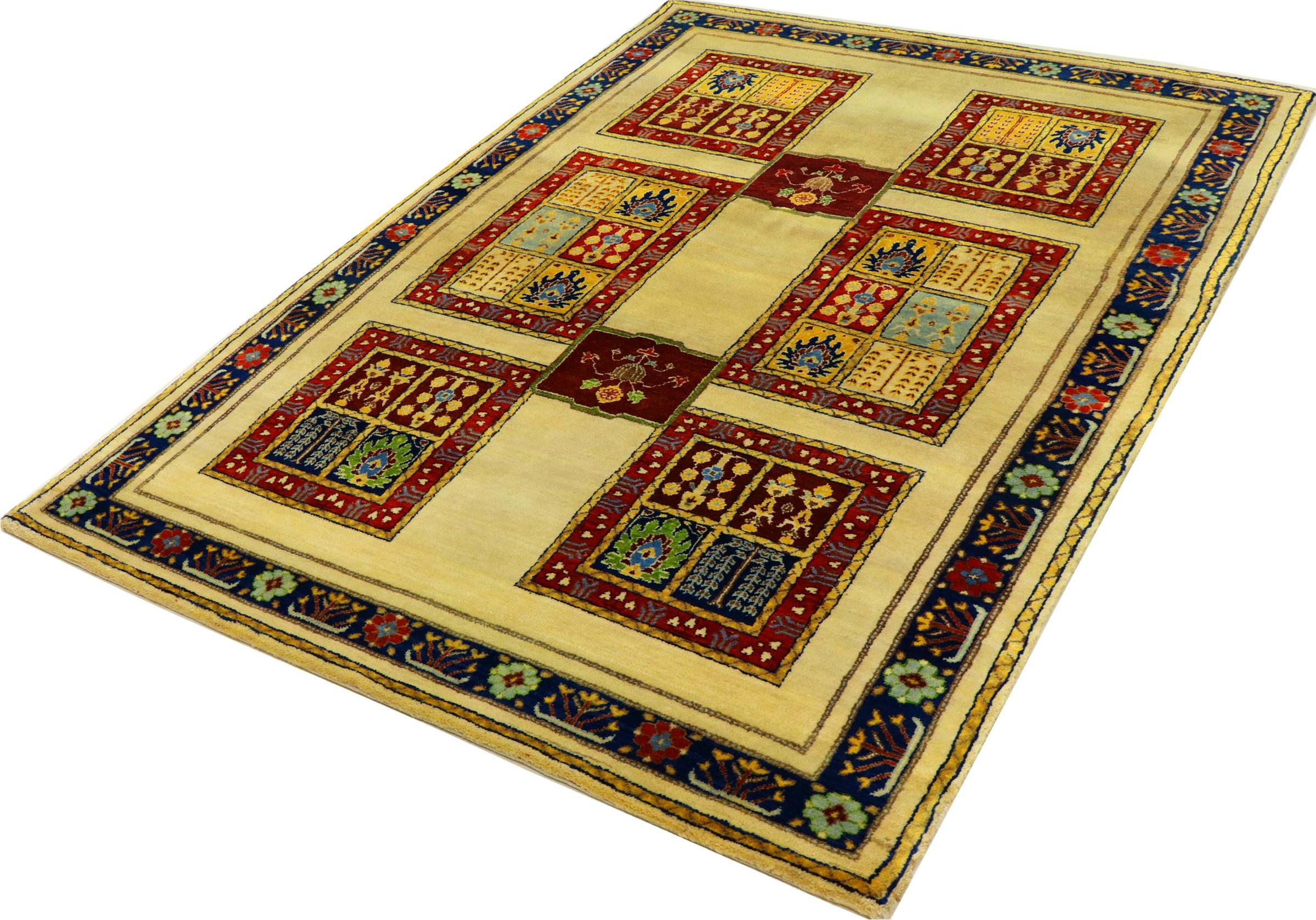 Dit prachtige tapijt is een Perzisch Gabbeh-tapijt en behoort daarom tot de hoogste kwaliteit Gabbeh-tapijten. De tapijten worden geknoopt door nomaden of semi-nomaden in Iran volgens traditioneel vakmanschap. De eenvoudige motieven en patronen zijn vooral geïnspireerd op de directe omgeving van de nomaden. Zo zijn er bijvoorbeeld kamelen, bomen of struiken te vinden op de traditionele tapijten. De Perzische Gabbeh-tapijten zijn gemaakt van wol van lokaal opgefokte kuddes schapen. De wol wordt dus meestal nog met de hand gesponnen. Elk van deze oosterse tapijten belichaamt dus een uniek karakter van de eeuwenoude cultuur.
