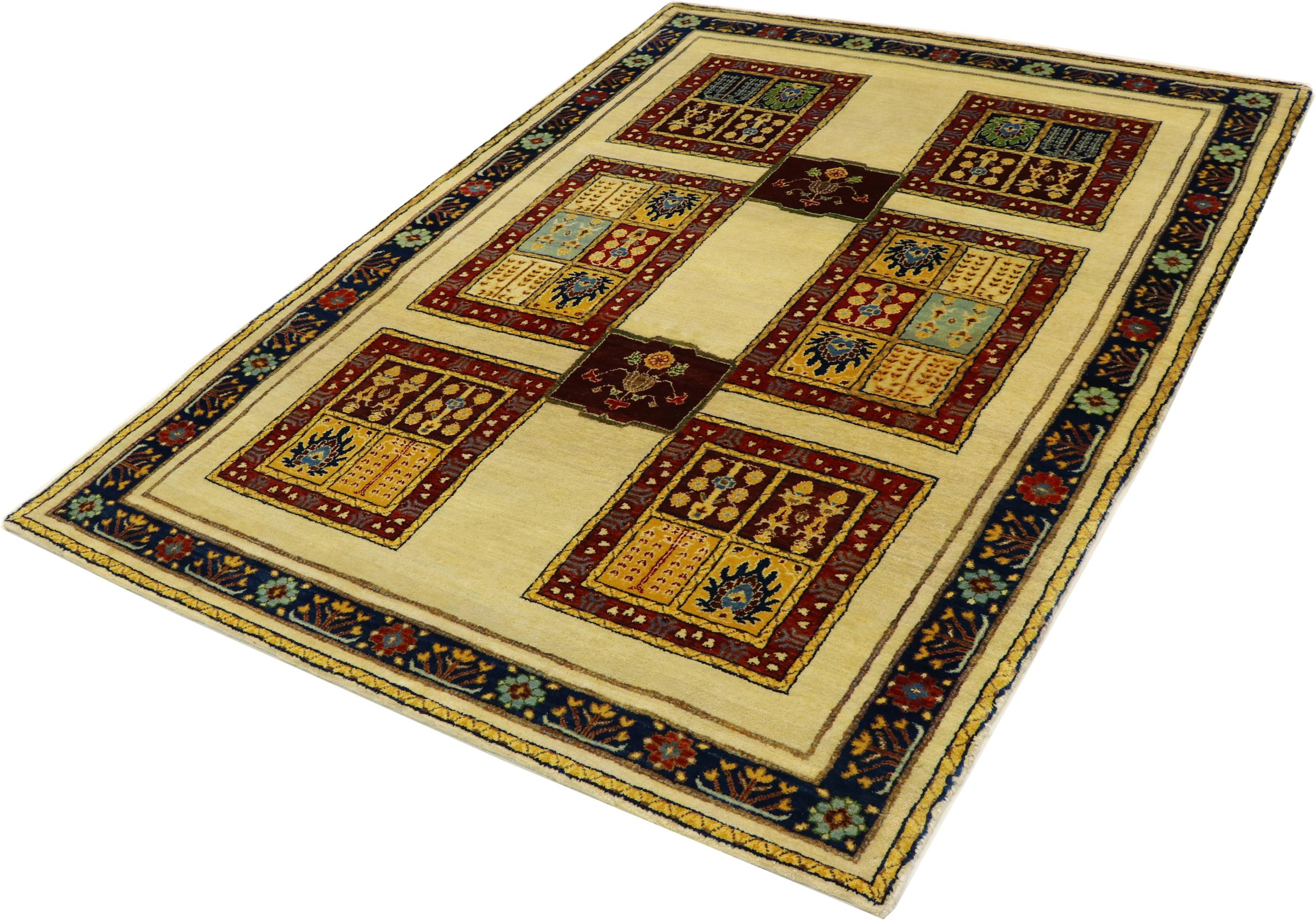 Een verfijning van de al bekende Gabbeh-tapijten: Dit is deze Perzische Gabbeh Loribaft. Het weet indruk te maken met zijn fijnere weefsel en prachtige ontwerp. Het werd door Loren in het zuiden van Perzië met de hand geknoopt van de beste handgesponnen schapenwol. Voor het verven van de wol worden uitsluitend pure plantaardige kleurstoffen gebruikt. Met dit vloerkleed haal je de hoogste standaard van een Gabbeh-tapijt in huis.