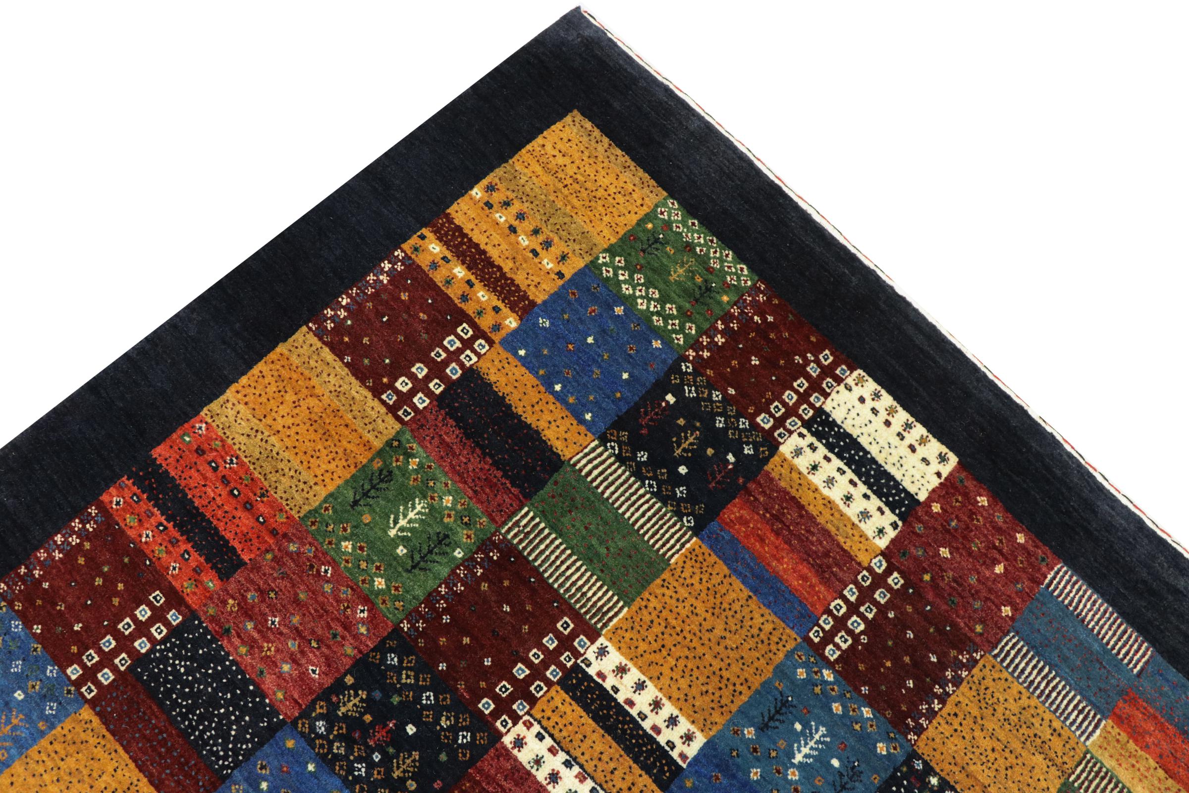 Een verfijning van de al bekende Gabbeh-tapijten: Dit is deze Perzische Gabbeh Loribaft. Het weet indruk te maken met zijn fijnere weefsel en prachtige ontwerp. Het werd door Loren in het zuiden van Perzië met de hand geknoopt van de beste handgesponnen schapenwol. Voor het verven van de wol worden uitsluitend pure plantaardige kleurstoffen gebruikt. Met dit vloerkleed haal je de hoogste standaard van een Gabbeh-tapijt in huis.