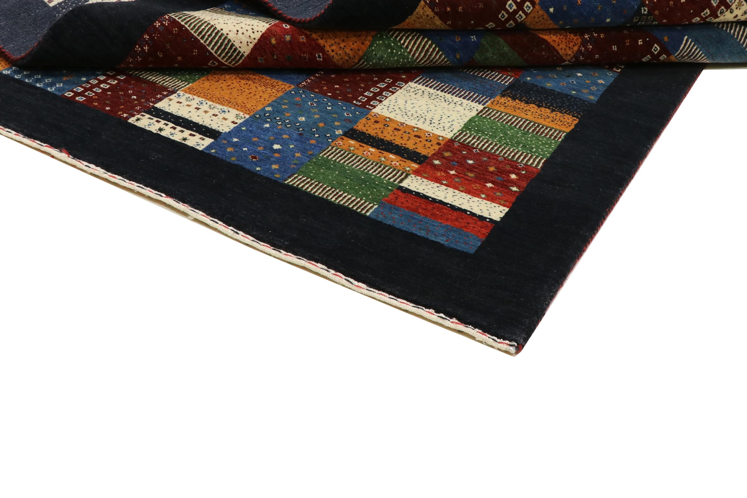 Dit prachtige tapijt is een Perzisch Gabbeh-tapijt en behoort daarom tot de hoogste kwaliteit Gabbeh-tapijten. De tapijten worden geknoopt door nomaden of semi-nomaden in Iran volgens traditioneel vakmanschap. De eenvoudige motieven en patronen zijn vooral geïnspireerd op de directe omgeving van de nomaden. Zo zijn er bijvoorbeeld kamelen, bomen of struiken te vinden op de traditionele tapijten. De Perzische Gabbeh-tapijten zijn gemaakt van wol van lokaal opgefokte kuddes schapen. De wol wordt dus meestal nog met de hand gesponnen. Elk van deze oosterse tapijten belichaamt dus een uniek karakter van de eeuwenoude cultuur.