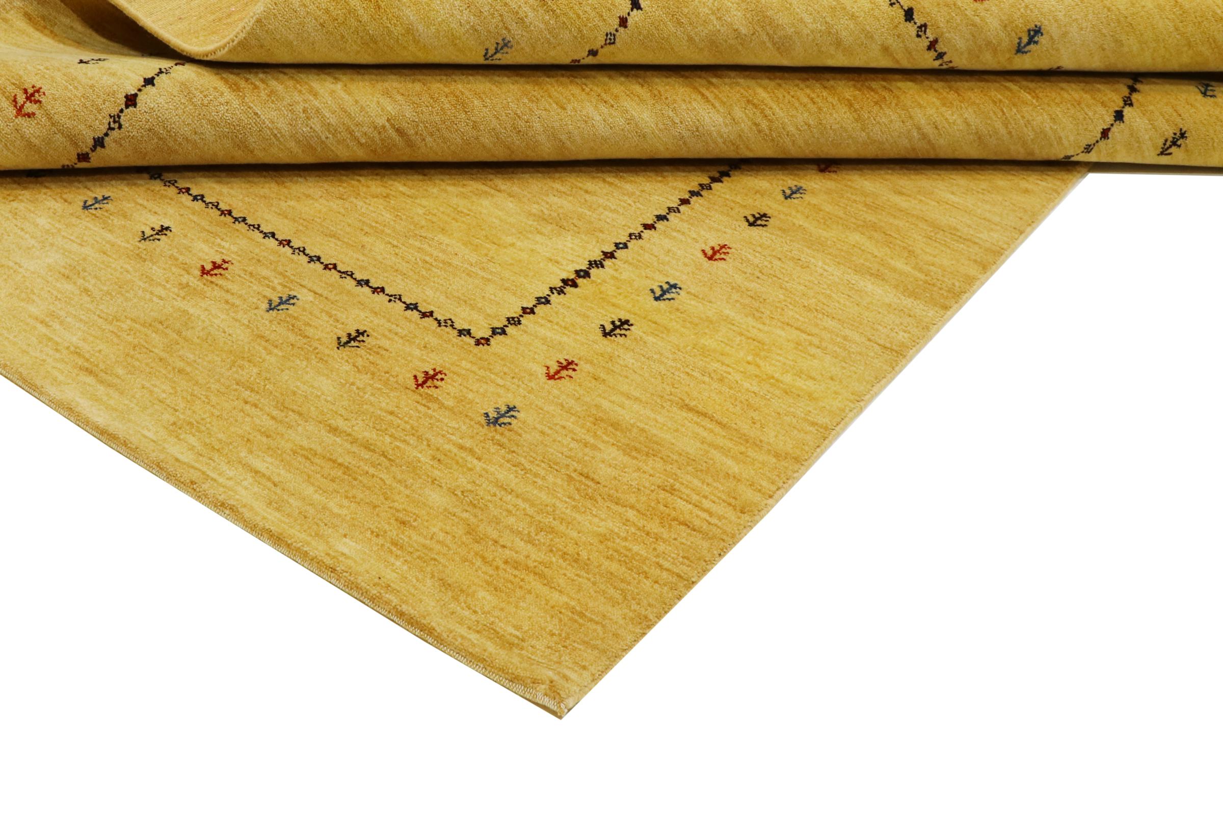 Dit prachtige tapijt is een Perzisch Gabbeh-tapijt en behoort daarom tot de hoogste kwaliteit Gabbeh-tapijten. De tapijten worden geknoopt door nomaden of semi-nomaden in Iran volgens traditioneel vakmanschap. De eenvoudige motieven en patronen zijn vooral geïnspireerd op de directe omgeving van de nomaden. Zo zijn er bijvoorbeeld kamelen, bomen of struiken te vinden op de traditionele tapijten. De Perzische Gabbeh-tapijten zijn gemaakt van wol van lokaal opgefokte kuddes schapen. De wol wordt dus meestal nog met de hand gesponnen. Elk van deze oosterse tapijten belichaamt dus een uniek karakter van de eeuwenoude cultuur.