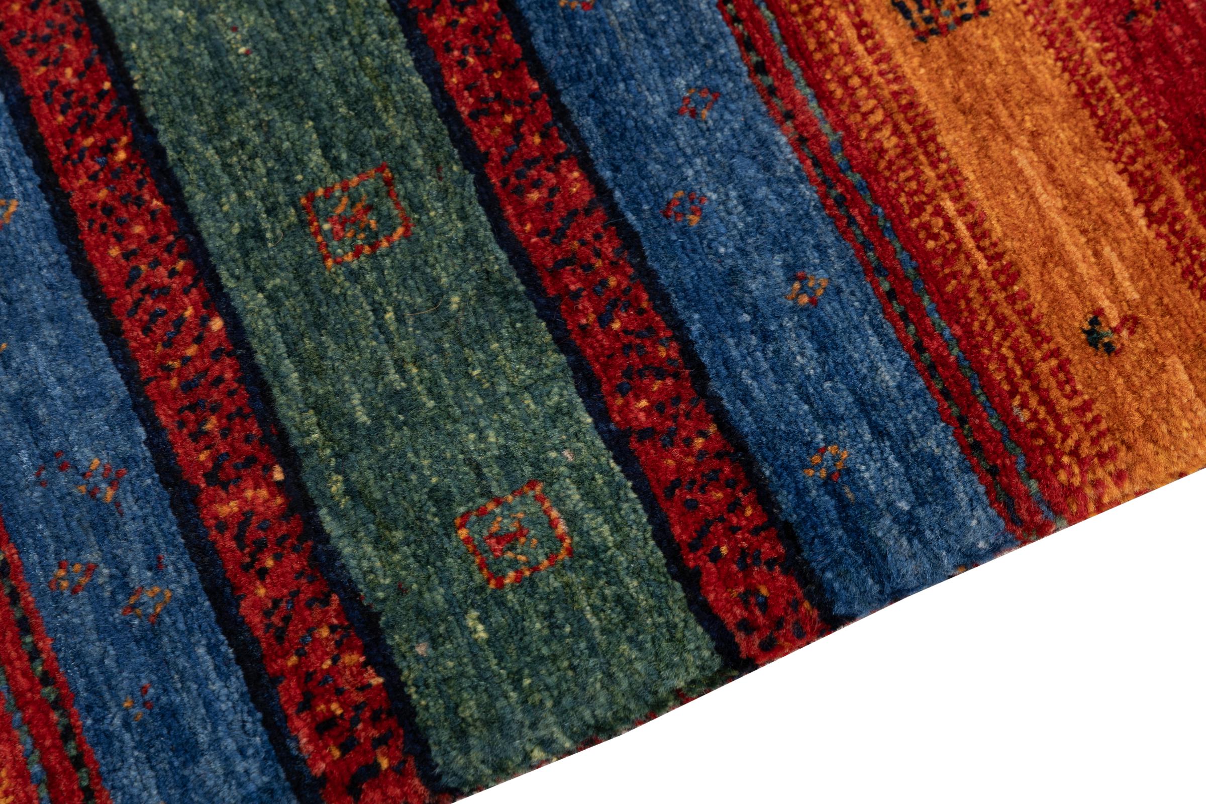 Dit prachtige tapijt is een Perzisch Gabbeh-tapijt en behoort daarom tot de hoogste kwaliteit Gabbeh-tapijten. De tapijten worden geknoopt door nomaden of semi-nomaden in Iran volgens traditioneel vakmanschap. De eenvoudige motieven en patronen zijn vooral geïnspireerd op de directe omgeving van de nomaden. Zo zijn er bijvoorbeeld kamelen, bomen of struiken te vinden op de traditionele tapijten. De Perzische Gabbeh-tapijten zijn gemaakt van wol van lokaal opgefokte kuddes schapen. De wol wordt dus meestal nog met de hand gesponnen. Elk van deze oosterse tapijten belichaamt dus een uniek karakter van de eeuwenoude cultuur.