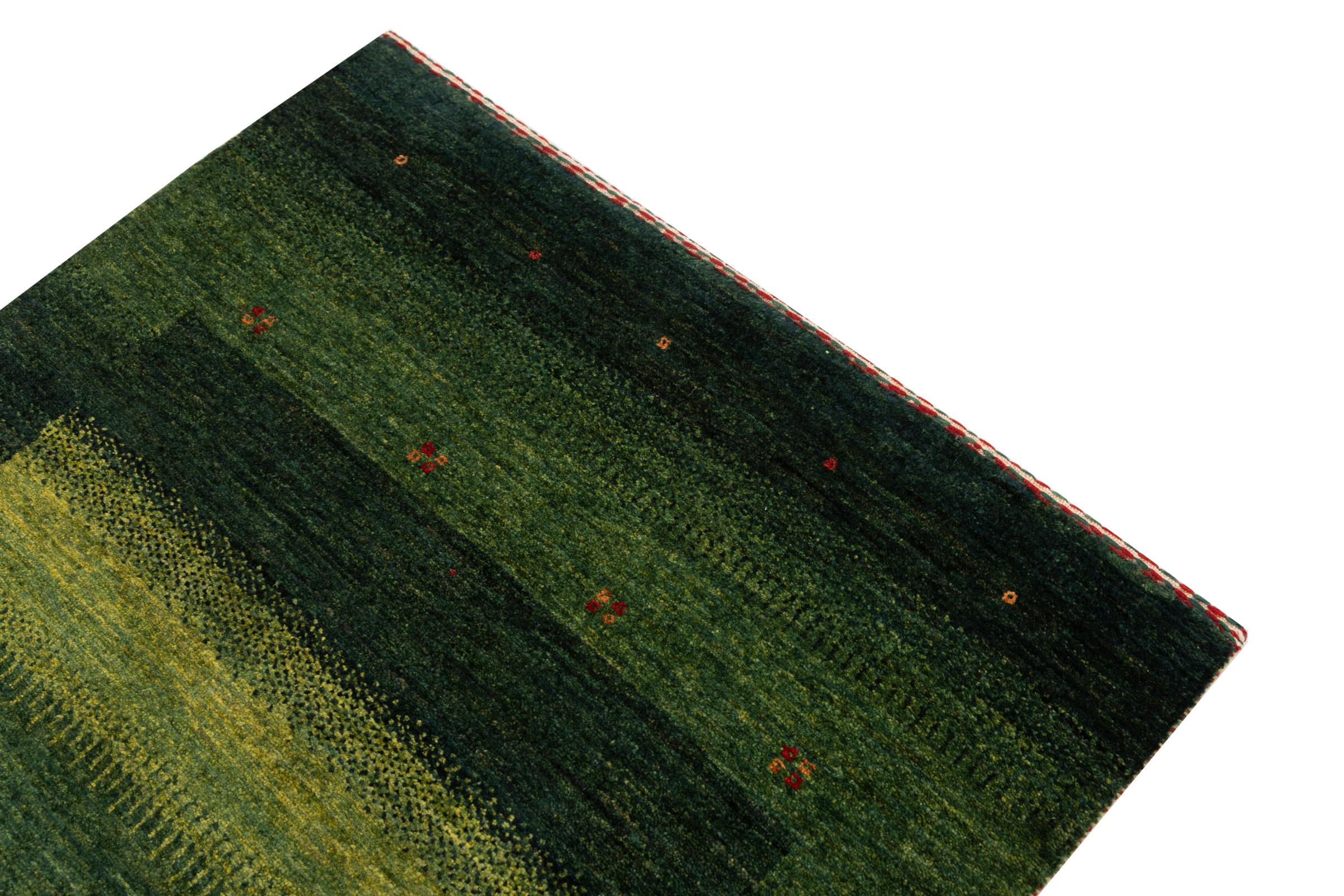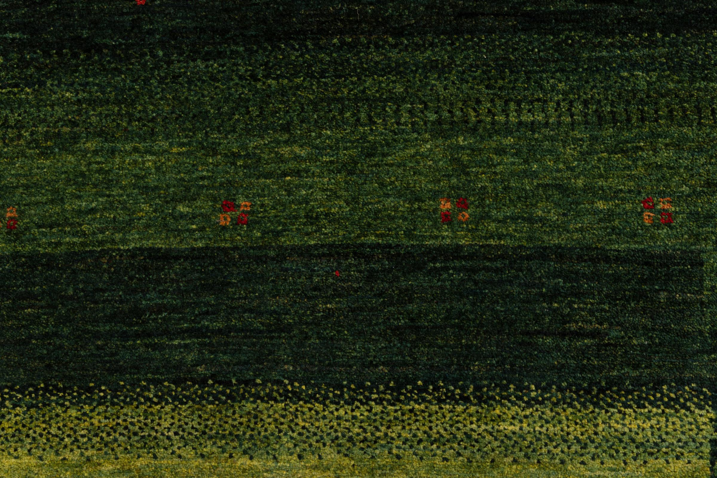 Een verfijning van de al bekende Gabbeh-tapijten: Dit is deze Perzische Gabbeh Loribaft. Het weet indruk te maken met zijn fijnere weefsel en prachtige ontwerp. Het werd door Loren in het zuiden van Perzië met de hand geknoopt van de beste handgesponnen schapenwol. Voor het verven van de wol worden uitsluitend pure plantaardige kleurstoffen gebruikt. Met dit vloerkleed haal je de hoogste standaard van een Gabbeh-tapijt in huis.