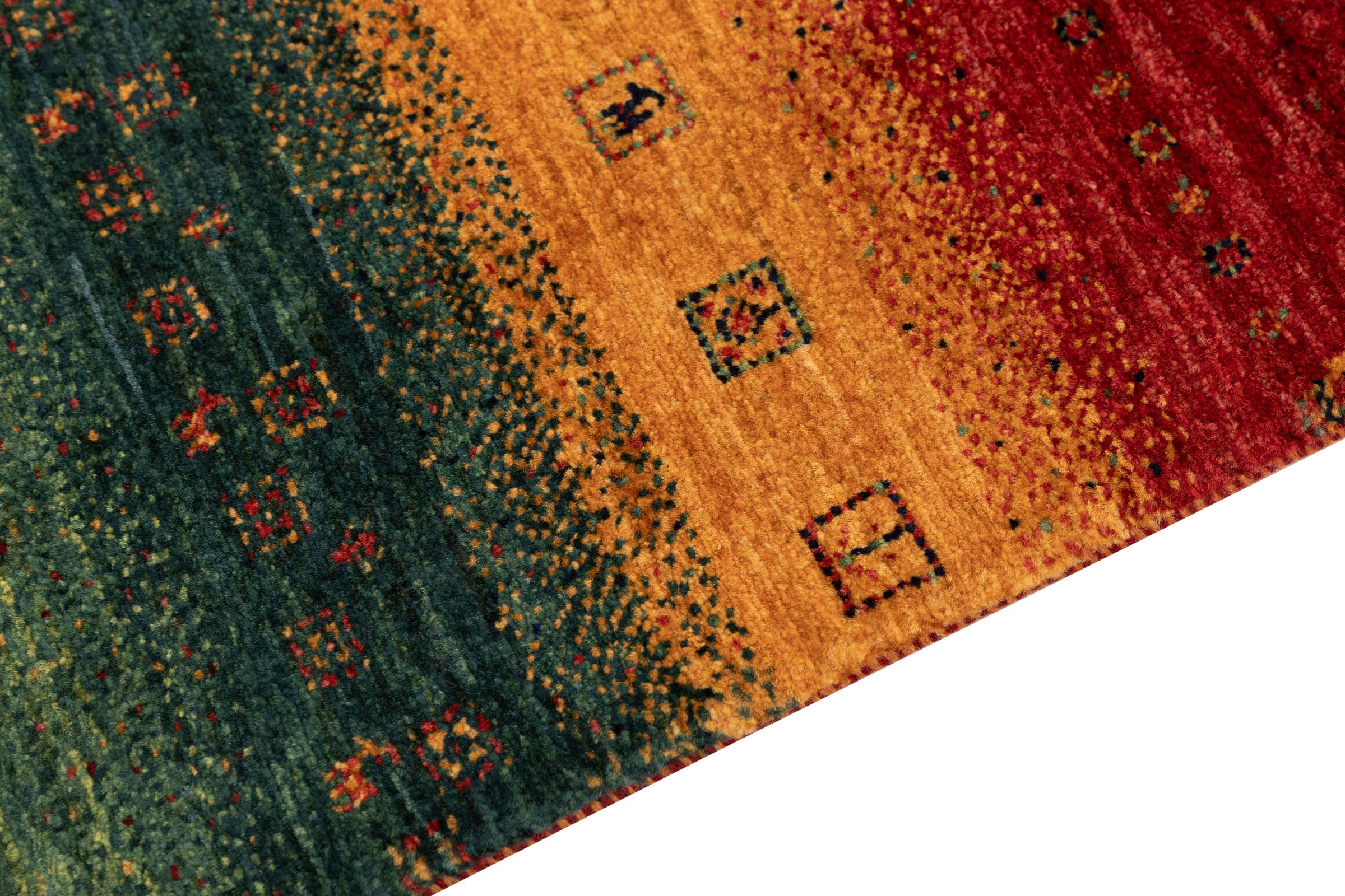 Dit prachtige tapijt is een Perzisch Gabbeh-tapijt en behoort daarom tot de hoogste kwaliteit Gabbeh-tapijten. De tapijten worden geknoopt door nomaden of semi-nomaden in Iran volgens traditioneel vakmanschap. De eenvoudige motieven en patronen zijn vooral geïnspireerd op de directe omgeving van de nomaden. Zo zijn er bijvoorbeeld kamelen, bomen of struiken te vinden op de traditionele tapijten. De Perzische Gabbeh-tapijten zijn gemaakt van wol van lokaal opgefokte kuddes schapen. De wol wordt dus meestal nog met de hand gesponnen. Elk van deze oosterse tapijten belichaamt dus een uniek karakter van de eeuwenoude cultuur.