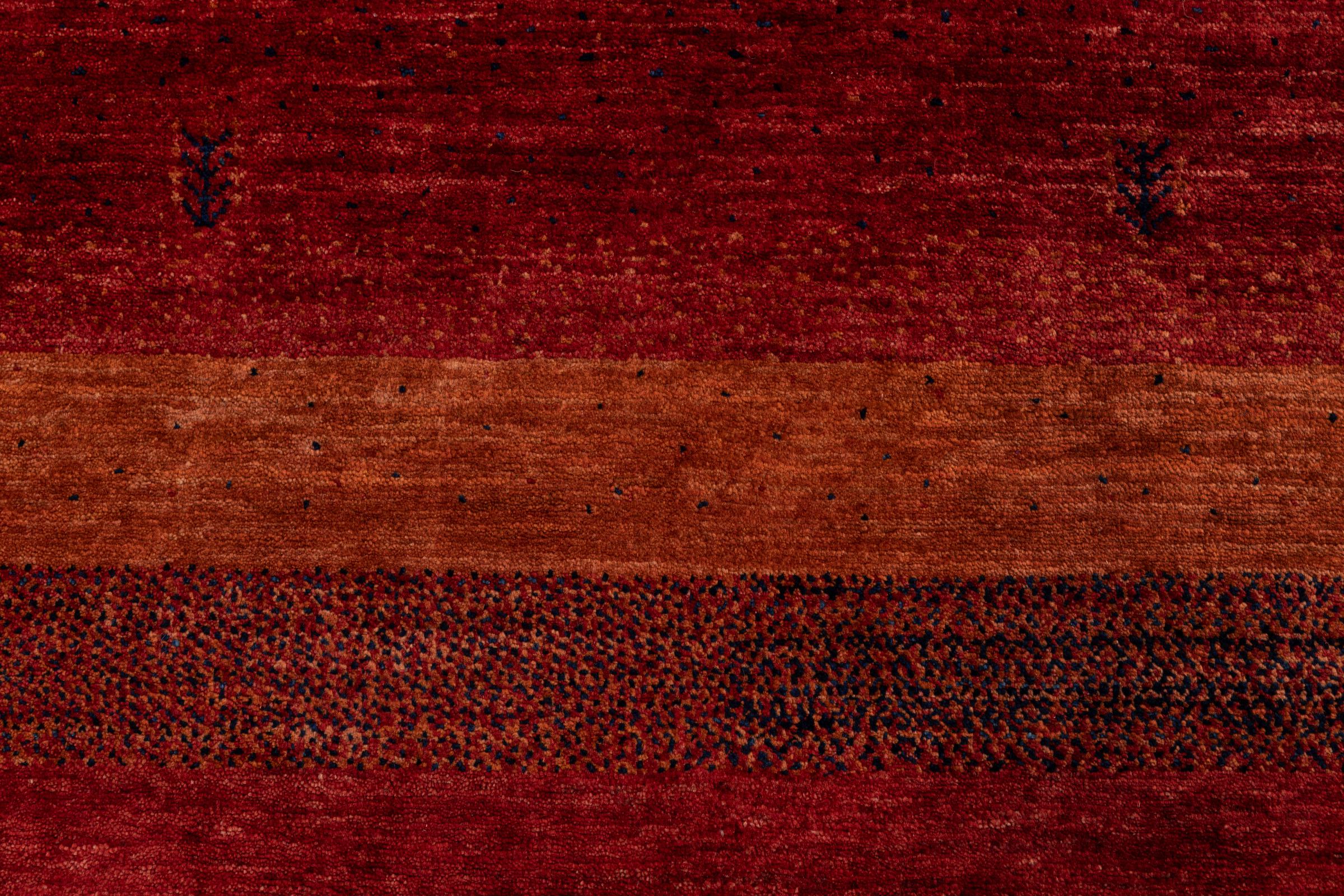 Een verfijning van de al bekende Gabbeh-tapijten: Dit is deze Perzische Gabbeh Loribaft. Het weet indruk te maken met zijn fijnere weefsel en prachtige ontwerp. Het werd door Loren in het zuiden van Perzië met de hand geknoopt van de beste handgesponnen schapenwol. Voor het verven van de wol worden uitsluitend pure plantaardige kleurstoffen gebruikt. Met dit vloerkleed haal je de hoogste standaard van een Gabbeh-tapijt in huis.