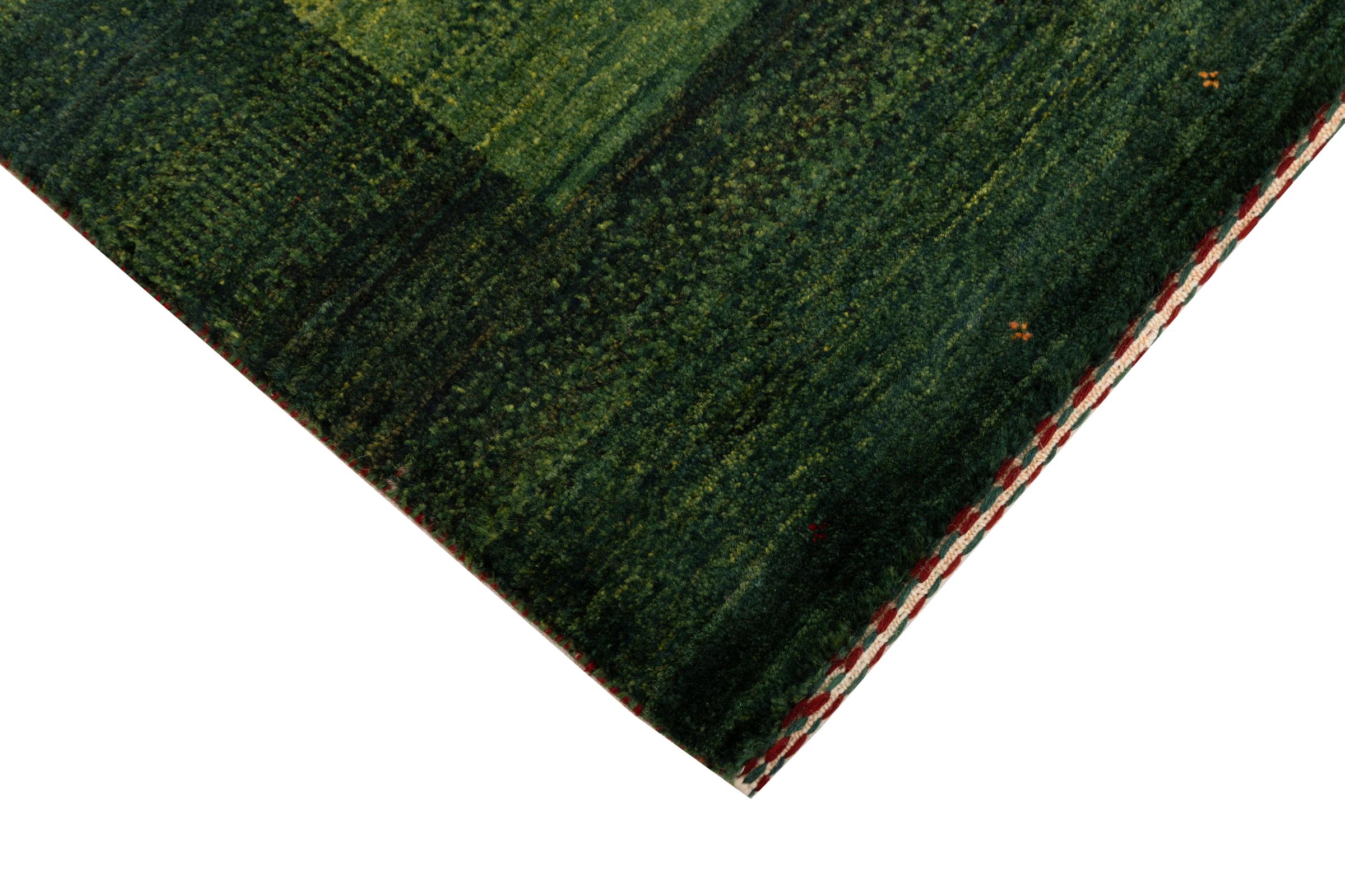 Een verfijning van de al bekende Gabbeh-tapijten: Dit is deze Perzische Gabbeh Loribaft. Het weet indruk te maken met zijn fijnere weefsel en prachtige ontwerp. Het werd door Loren in het zuiden van Perzië met de hand geknoopt van de beste handgesponnen schapenwol. Voor het verven van de wol worden uitsluitend pure plantaardige kleurstoffen gebruikt. Met dit vloerkleed haal je de hoogste standaard van een Gabbeh-tapijt in huis.