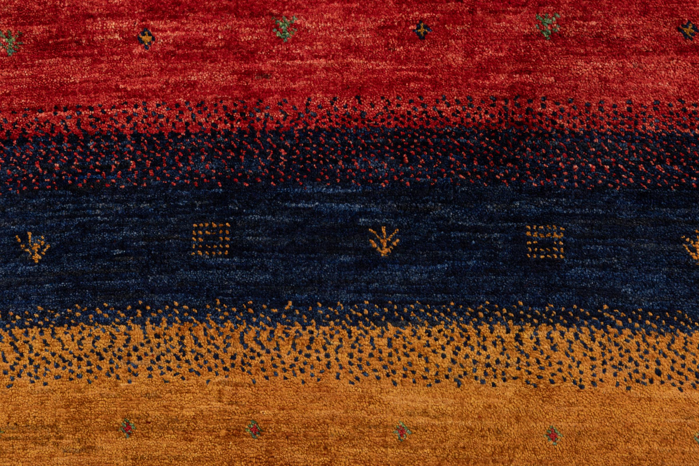 Een verfijning van de al bekende Gabbeh-tapijten: Dit is deze Perzische Gabbeh Loribaft. Het weet indruk te maken met zijn fijnere weefsel en prachtige ontwerp. Het werd door Loren in het zuiden van Perzië met de hand geknoopt van de beste handgesponnen schapenwol. Voor het verven van de wol worden uitsluitend pure plantaardige kleurstoffen gebruikt. Met dit vloerkleed haal je de hoogste standaard van een Gabbeh-tapijt in huis.