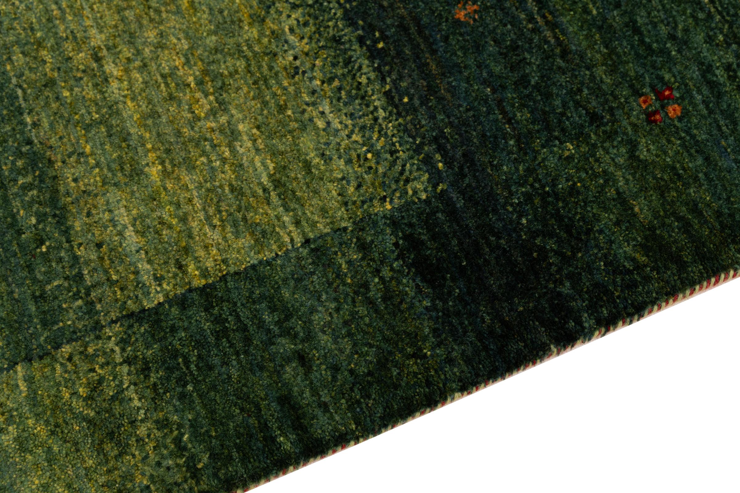 Een verfijning van de al bekende Gabbeh-tapijten: Dit is deze Perzische Gabbeh Loribaft. Het weet indruk te maken met zijn fijnere weefsel en prachtige ontwerp. Het werd door Loren in het zuiden van Perzië met de hand geknoopt van de beste handgesponnen schapenwol. Voor het verven van de wol worden uitsluitend pure plantaardige kleurstoffen gebruikt. Met dit vloerkleed haal je de hoogste standaard van een Gabbeh-tapijt in huis.