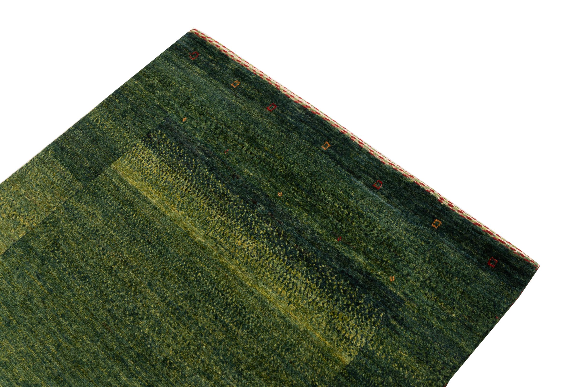 Een verfijning van de al bekende Gabbeh-tapijten: Dit is deze Perzische Gabbeh Loribaft. Het weet indruk te maken met zijn fijnere weefsel en prachtige ontwerp. Het werd door Loren in het zuiden van Perzië met de hand geknoopt van de beste handgesponnen schapenwol. Voor het verven van de wol worden uitsluitend pure plantaardige kleurstoffen gebruikt. Met dit vloerkleed haal je de hoogste standaard van een Gabbeh-tapijt in huis.