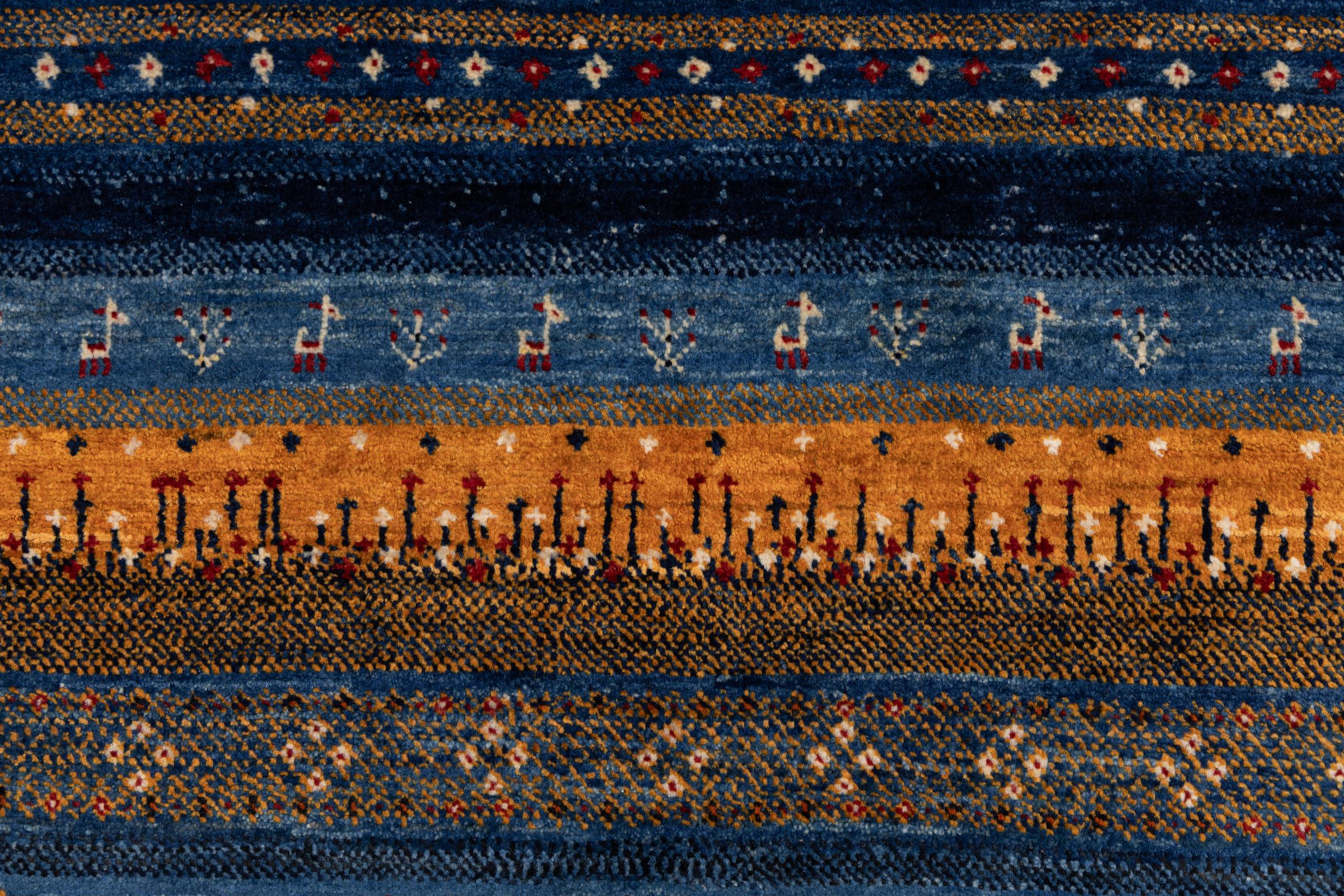 Een verfijning van de al bekende Gabbeh-tapijten: Dit is deze Perzische Gabbeh Loribaft. Het weet indruk te maken met zijn fijnere weefsel en prachtige ontwerp. Het werd door Loren in het zuiden van Perzië met de hand geknoopt van de beste handgesponnen schapenwol. Voor het verven van de wol worden uitsluitend pure plantaardige kleurstoffen gebruikt. Met dit vloerkleed haal je de hoogste standaard van een Gabbeh-tapijt in huis.