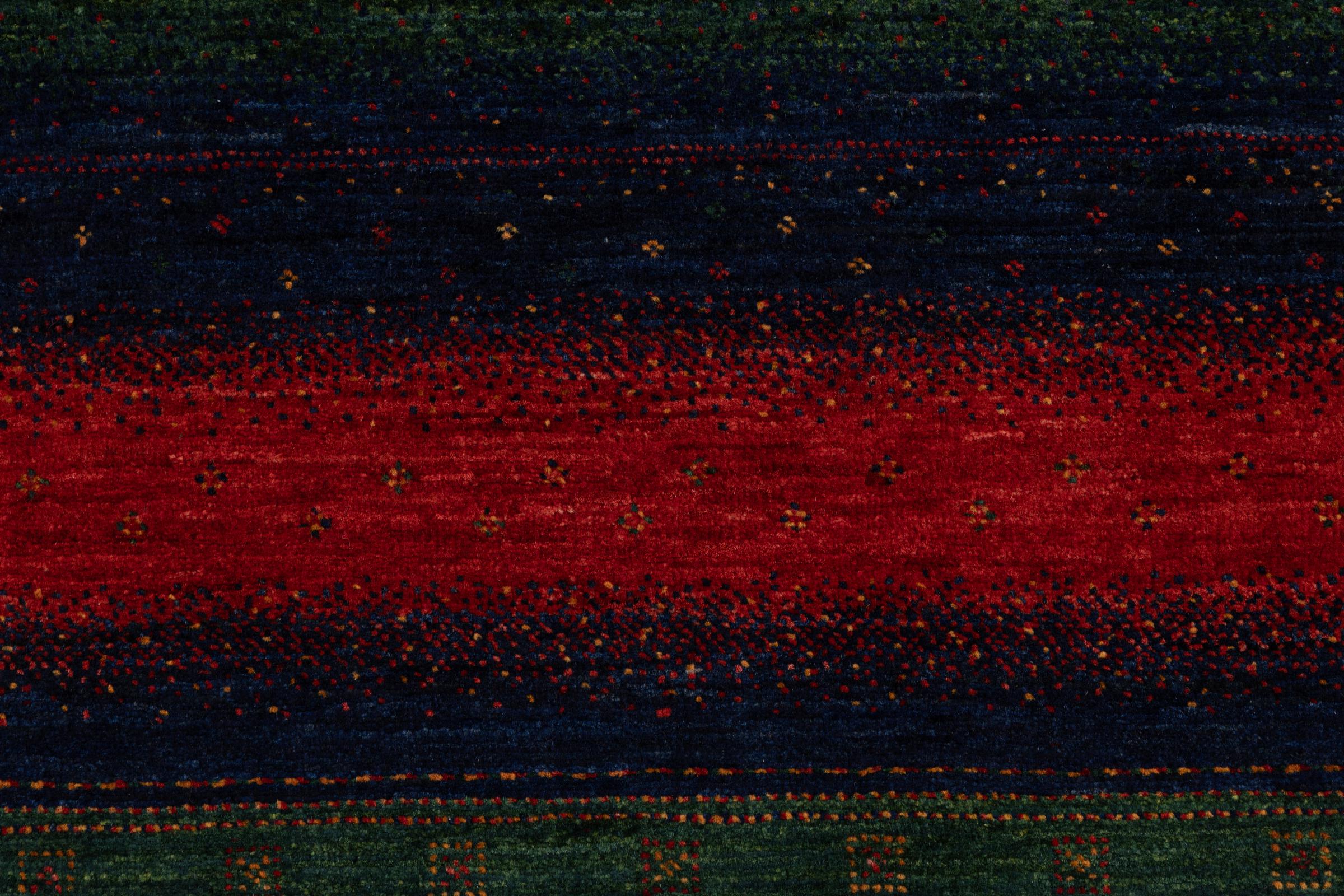 Een verfijning van de al bekende Gabbeh-tapijten: Dit is deze Perzische Gabbeh Loribaft. Het weet indruk te maken met zijn fijnere weefsel en prachtige ontwerp. Het werd door Loren in het zuiden van Perzië met de hand geknoopt van de beste handgesponnen schapenwol. Voor het verven van de wol worden uitsluitend pure plantaardige kleurstoffen gebruikt. Met dit vloerkleed haal je de hoogste standaard van een Gabbeh-tapijt in huis.