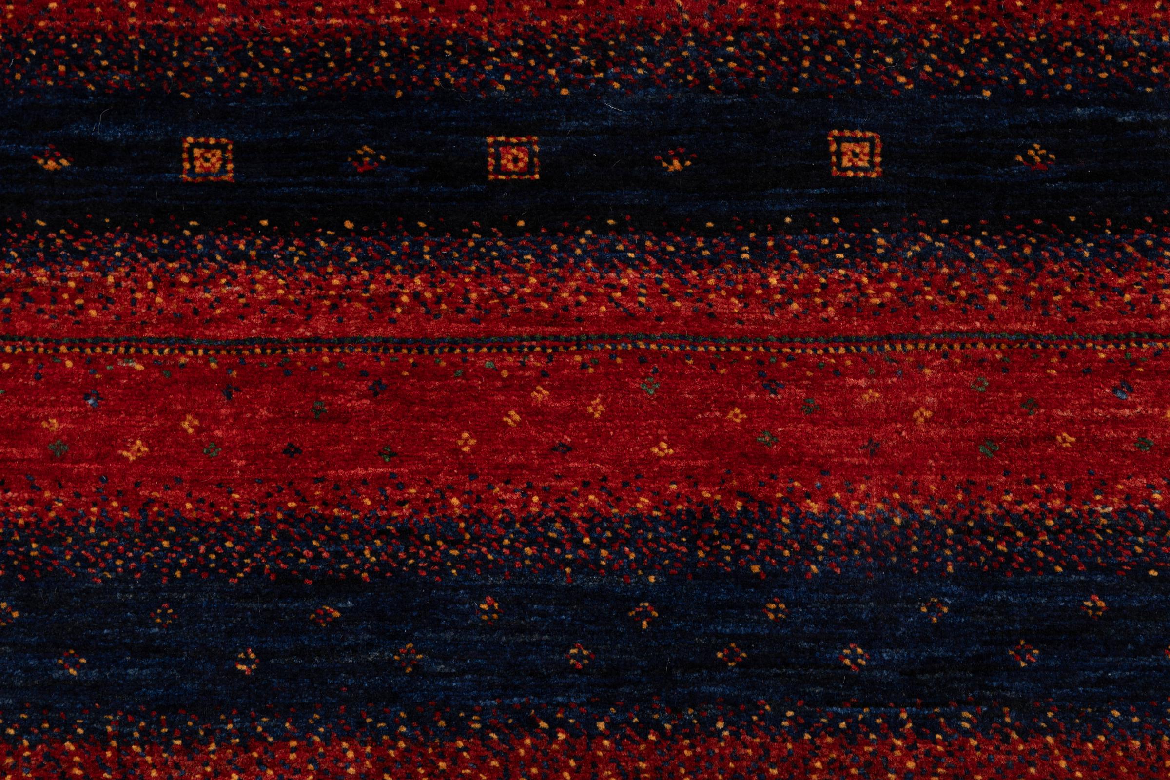 Een verfijning van de al bekende Gabbeh-tapijten: Dit is deze Perzische Gabbeh Loribaft. Het weet indruk te maken met zijn fijnere weefsel en prachtige ontwerp. Het werd door Loren in het zuiden van Perzië met de hand geknoopt van de beste handgesponnen schapenwol. Voor het verven van de wol worden uitsluitend pure plantaardige kleurstoffen gebruikt. Met dit vloerkleed haal je de hoogste standaard van een Gabbeh-tapijt in huis.