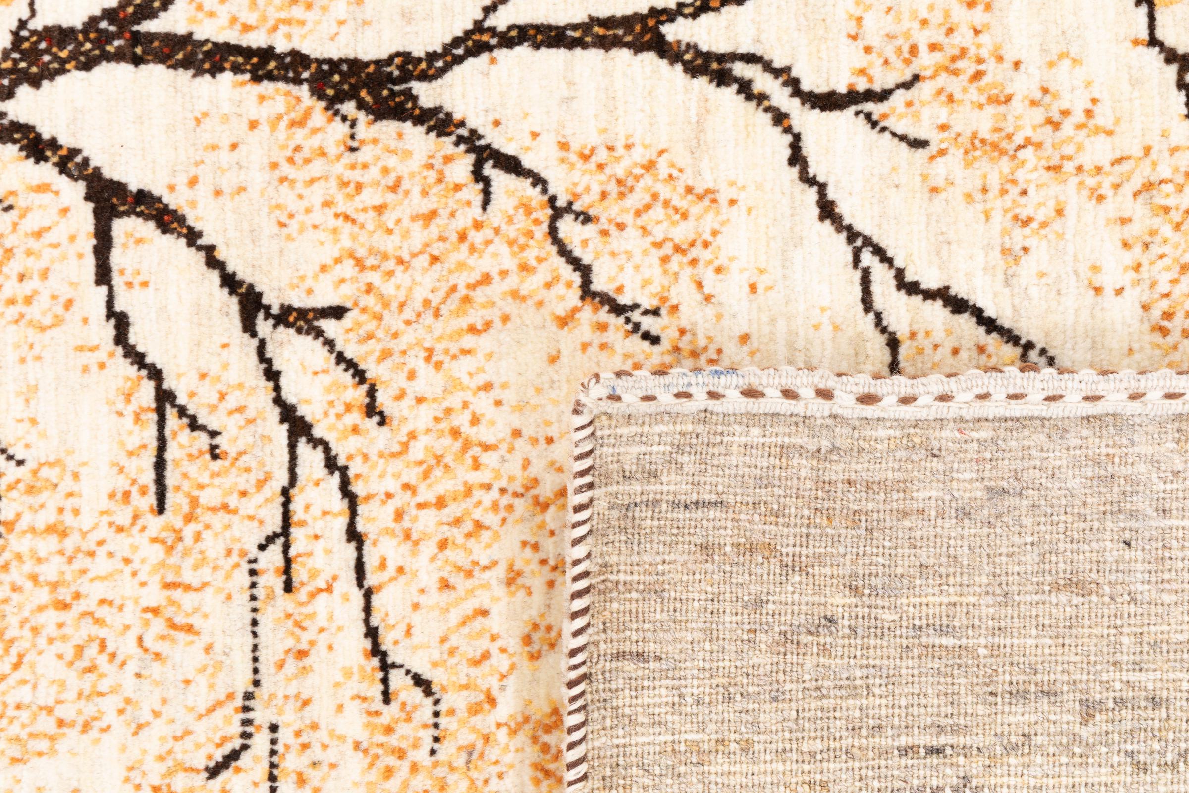 Dit tapijt is gemaakt van handgesponnen schapenwol van de hoogste kwaliteit. Vooral in Iran (voormalig Perzië), Afghanistan en Pakistan wordt de wol nog met de hand gesponnen voordat het eigenlijke knopen van het tapijt begint. Wol heeft zich door de eeuwen heen bewezen als een natuurlijk en extreem slijtvast materiaal. Het heeft onder andere vuilafstotende en warmte-isolerende eigenschappen. Tegelijkertijd is wol onvergelijkbaar zacht en heeft het een natuurlijke glans.