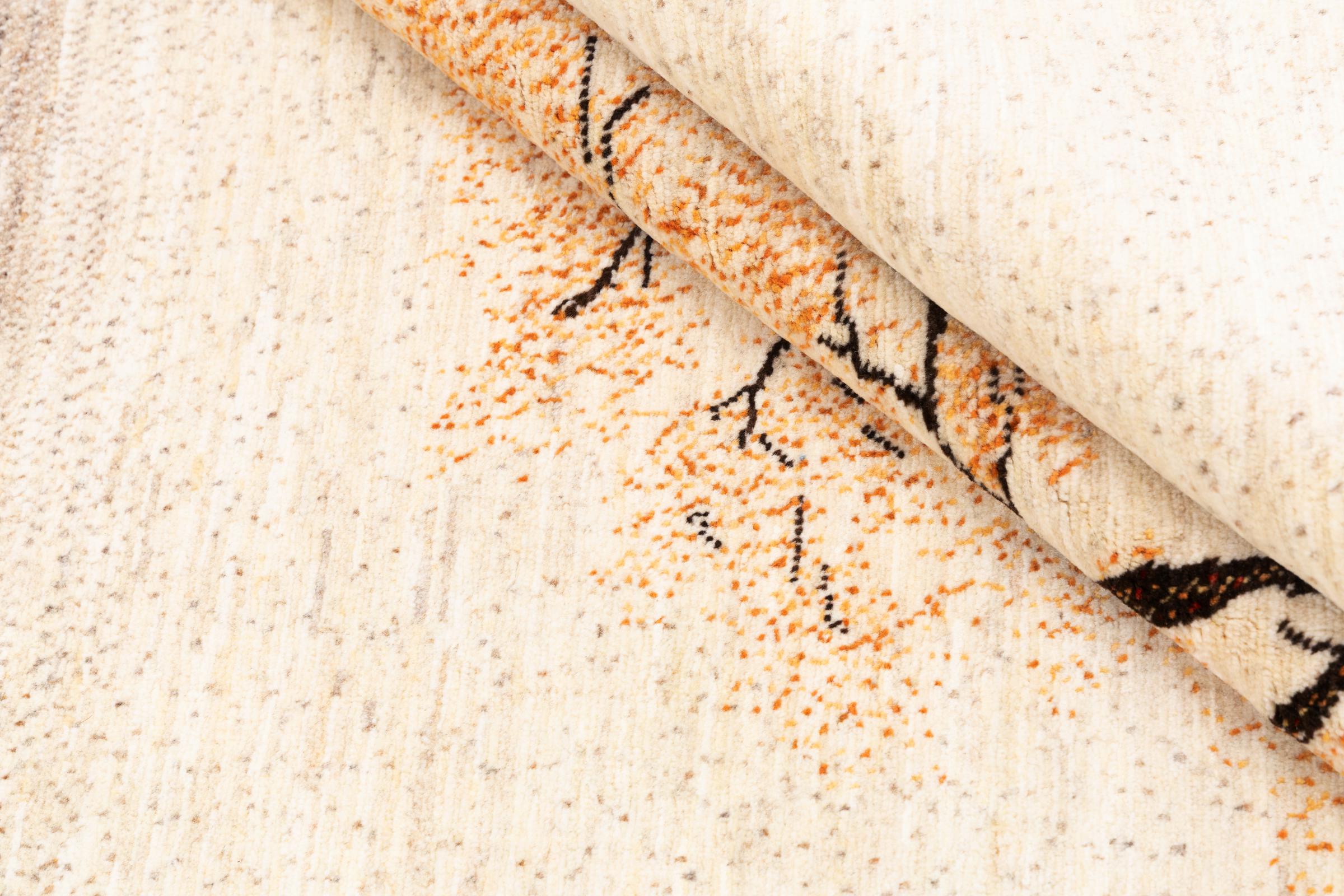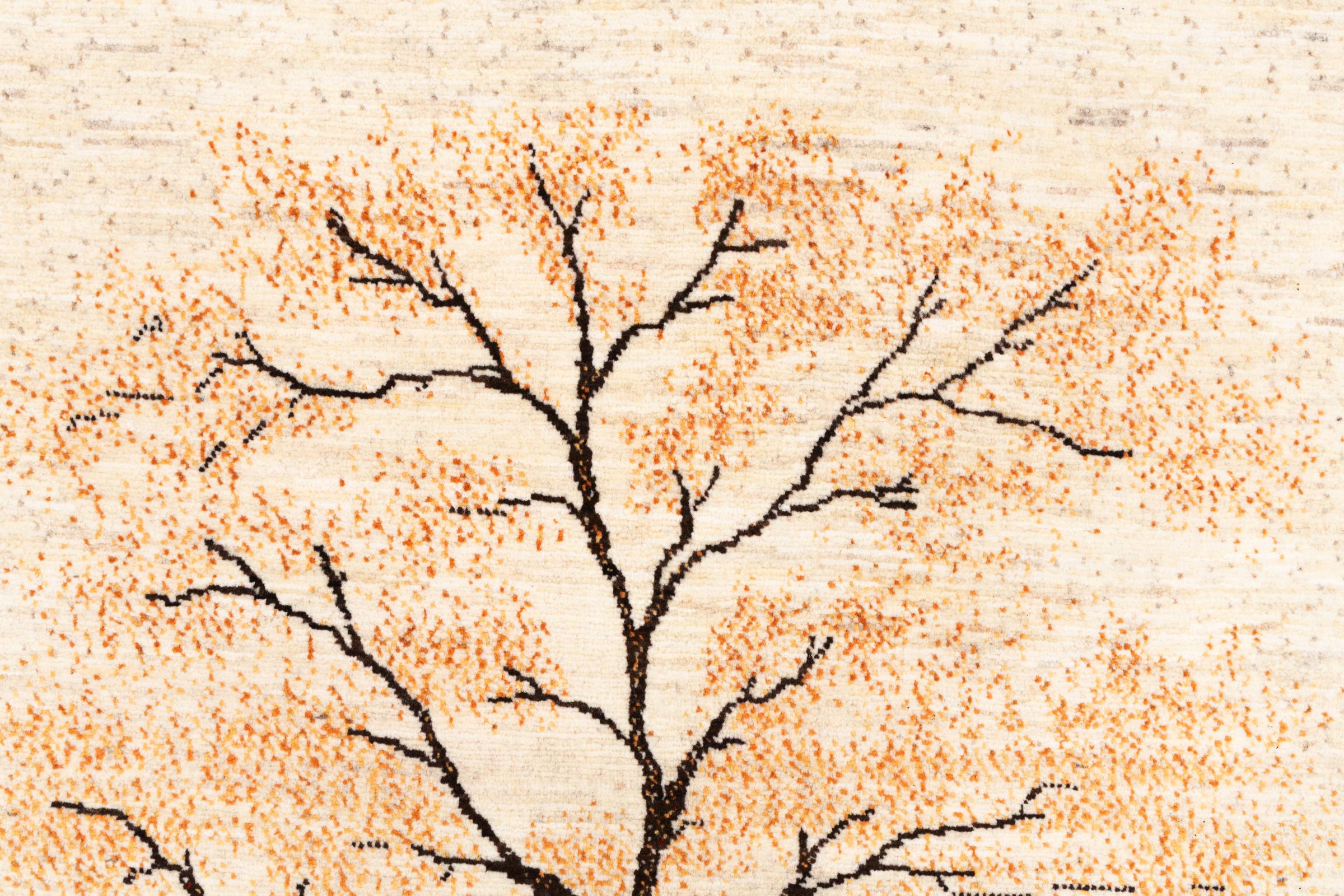 Dit prachtige tapijt is een Perzisch Gabbeh-tapijt en behoort daarom tot de hoogste kwaliteit Gabbeh-tapijten. De tapijten worden geknoopt door nomaden of semi-nomaden in Iran volgens traditioneel vakmanschap. De eenvoudige motieven en patronen zijn vooral geïnspireerd op de directe omgeving van de nomaden. Zo zijn er bijvoorbeeld kamelen, bomen of struiken te vinden op de traditionele tapijten. De Perzische Gabbeh-tapijten zijn gemaakt van wol van lokaal opgefokte kuddes schapen. De wol wordt dus meestal nog met de hand gesponnen. Elk van deze oosterse tapijten belichaamt dus een uniek karakter van de eeuwenoude cultuur.