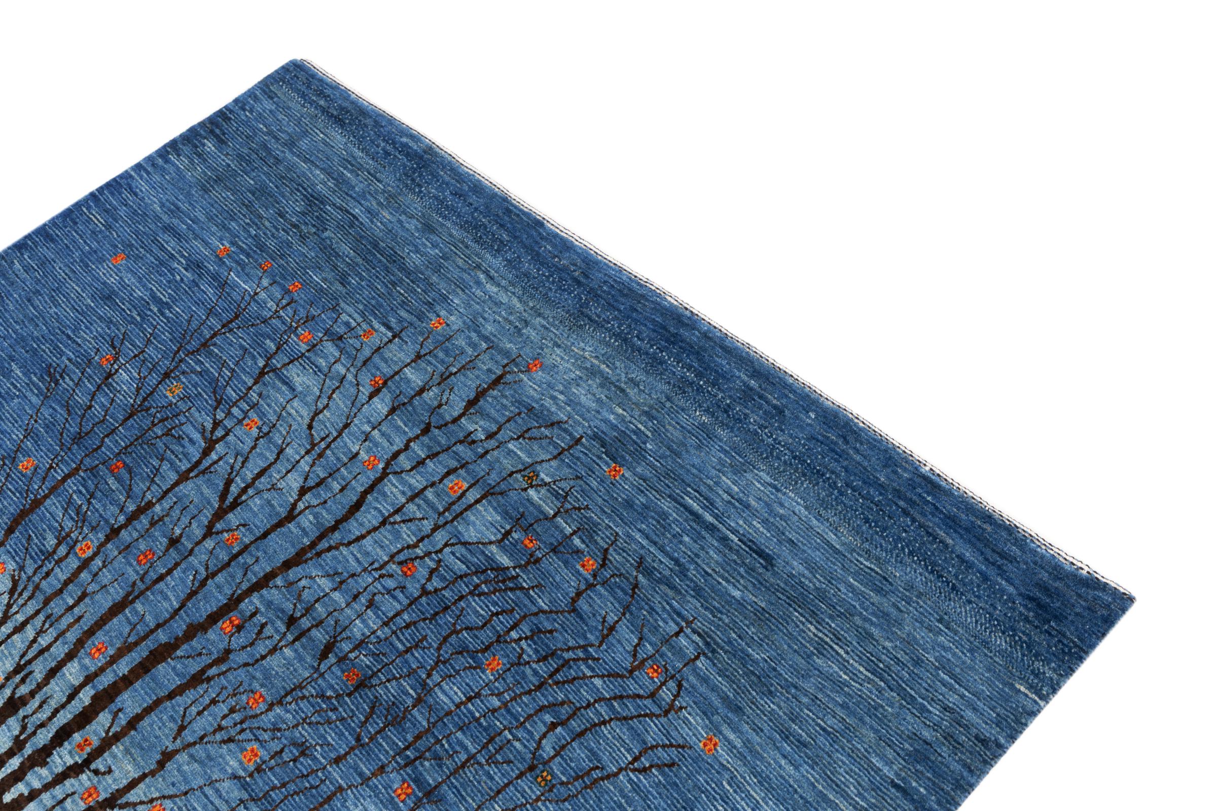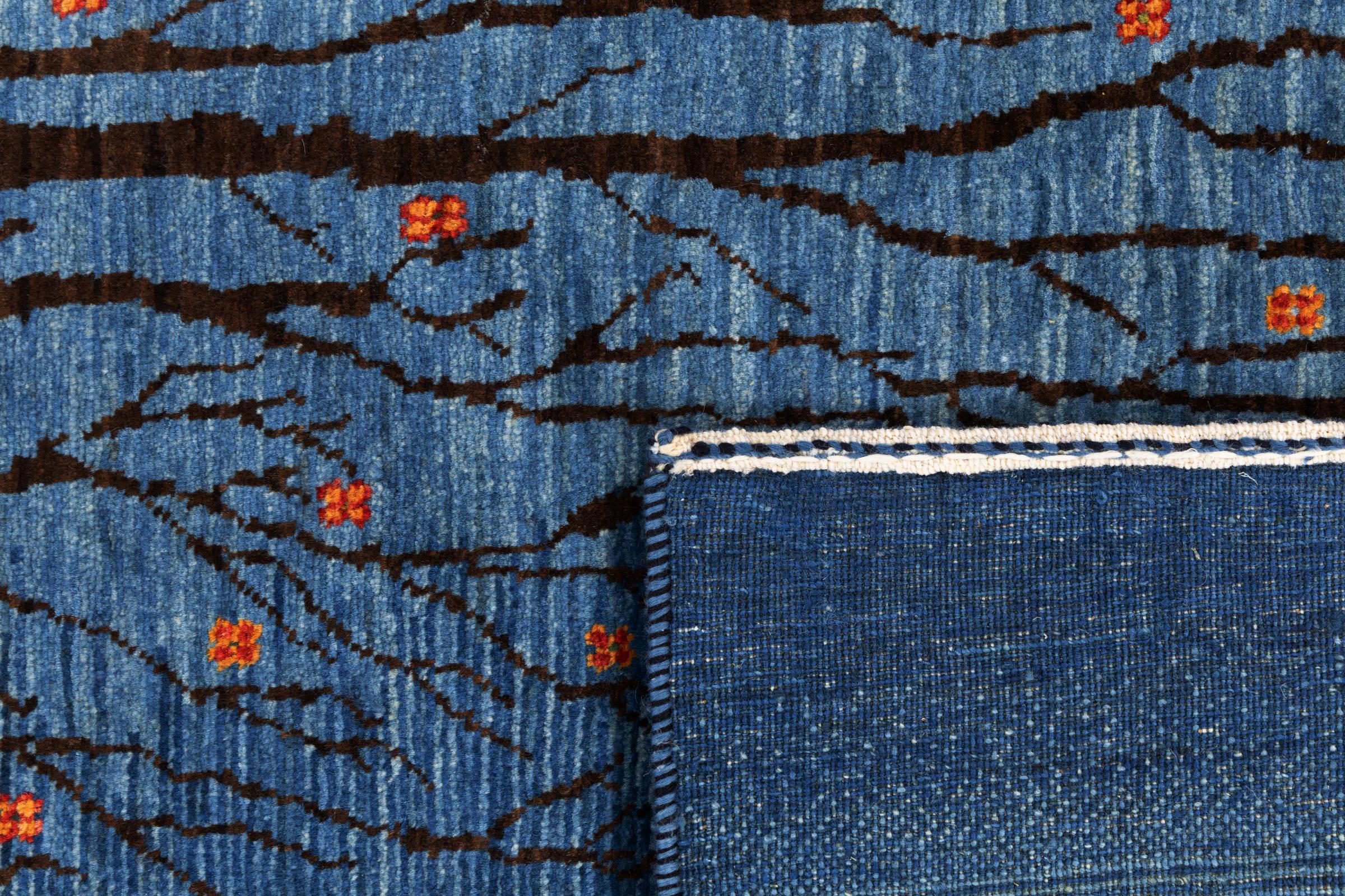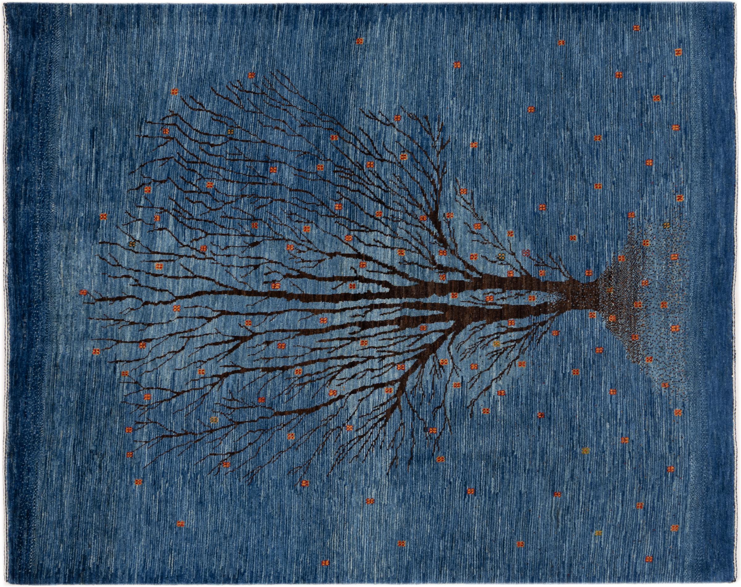Dit prachtige tapijt is een Perzisch Gabbeh-tapijt en behoort daarom tot de hoogste kwaliteit Gabbeh-tapijten. De tapijten worden geknoopt door nomaden of semi-nomaden in Iran volgens traditioneel vakmanschap. De eenvoudige motieven en patronen zijn vooral geïnspireerd op de directe omgeving van de nomaden. Zo zijn er bijvoorbeeld kamelen, bomen of struiken te vinden op de traditionele tapijten. De Perzische Gabbeh-tapijten zijn gemaakt van wol van lokaal opgefokte kuddes schapen. De wol wordt dus meestal nog met de hand gesponnen. Elk van deze oosterse tapijten belichaamt dus een uniek karakter van de eeuwenoude cultuur.