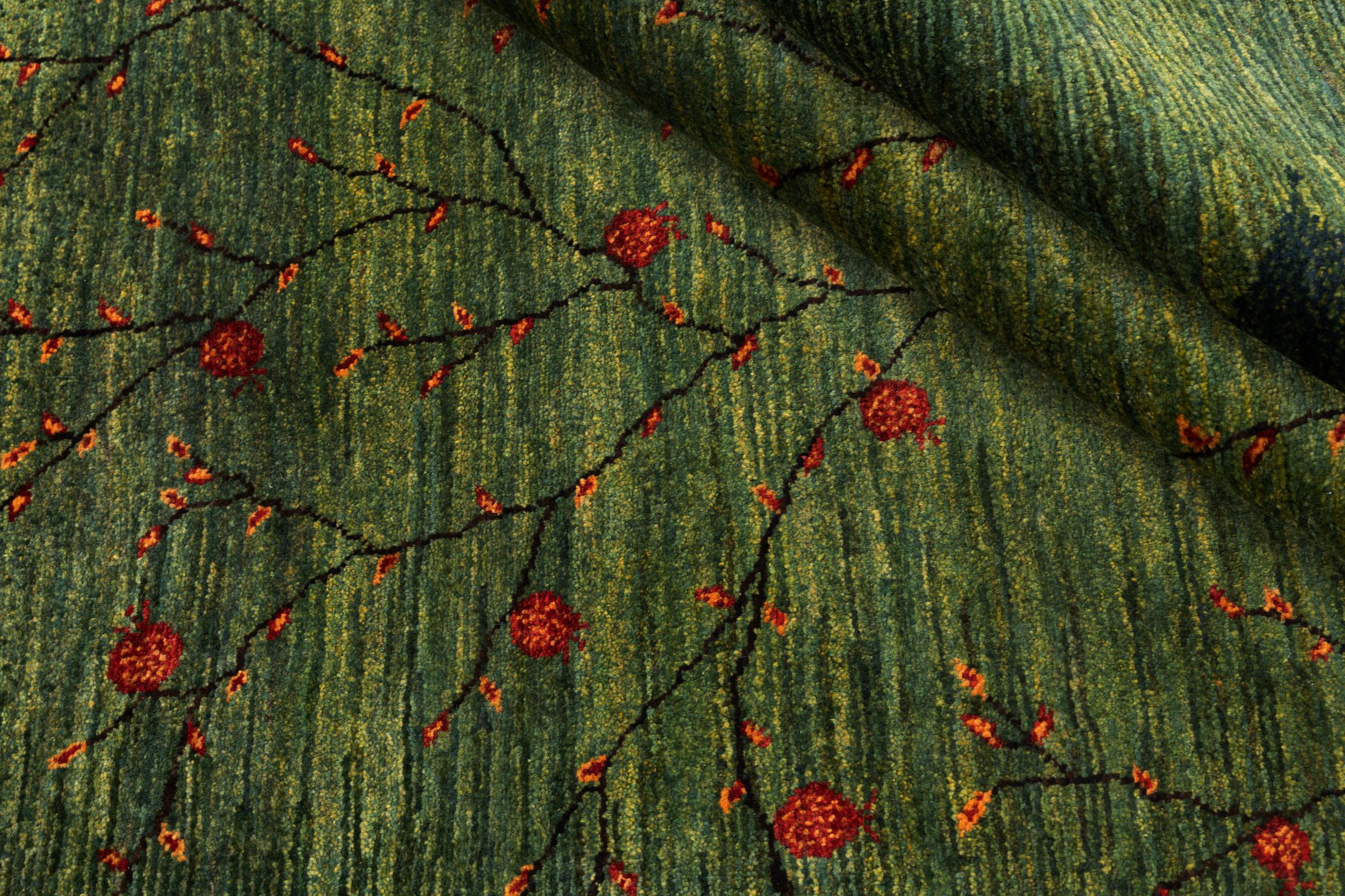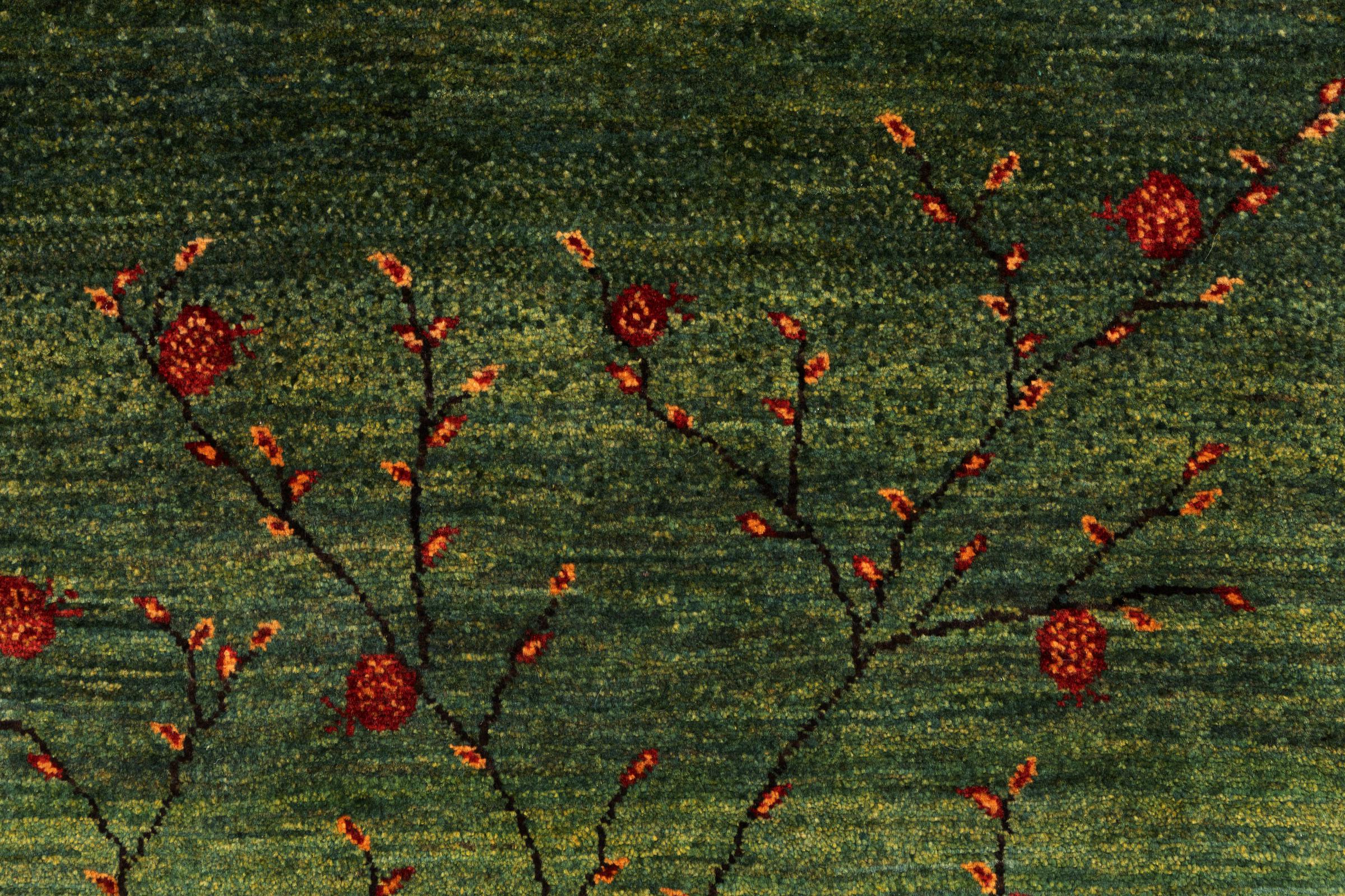 Dit tapijt is gemaakt van handgesponnen schapenwol van de hoogste kwaliteit. Vooral in Iran (voormalig Perzië), Afghanistan en Pakistan wordt de wol nog met de hand gesponnen voordat het eigenlijke knopen van het tapijt begint. Wol heeft zich door de eeuwen heen bewezen als een natuurlijk en extreem slijtvast materiaal. Het heeft onder andere vuilafstotende en warmte-isolerende eigenschappen. Tegelijkertijd is wol onvergelijkbaar zacht en heeft het een natuurlijke glans.