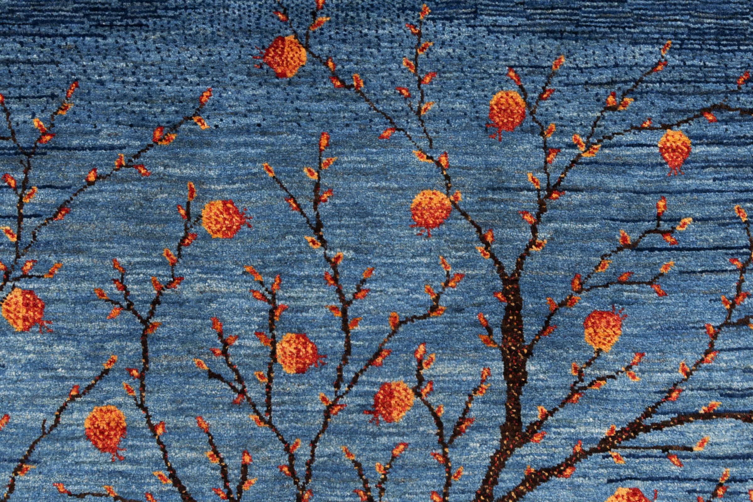 Dit prachtige tapijt is een Perzisch Gabbeh-tapijt en behoort daarom tot de hoogste kwaliteit Gabbeh-tapijten. De tapijten worden geknoopt door nomaden of semi-nomaden in Iran volgens traditioneel vakmanschap. De eenvoudige motieven en patronen zijn vooral geïnspireerd op de directe omgeving van de nomaden. Zo zijn er bijvoorbeeld kamelen, bomen of struiken te vinden op de traditionele tapijten. De Perzische Gabbeh-tapijten zijn gemaakt van wol van lokaal opgefokte kuddes schapen. De wol wordt dus meestal nog met de hand gesponnen. Elk van deze oosterse tapijten belichaamt dus een uniek karakter van de eeuwenoude cultuur.