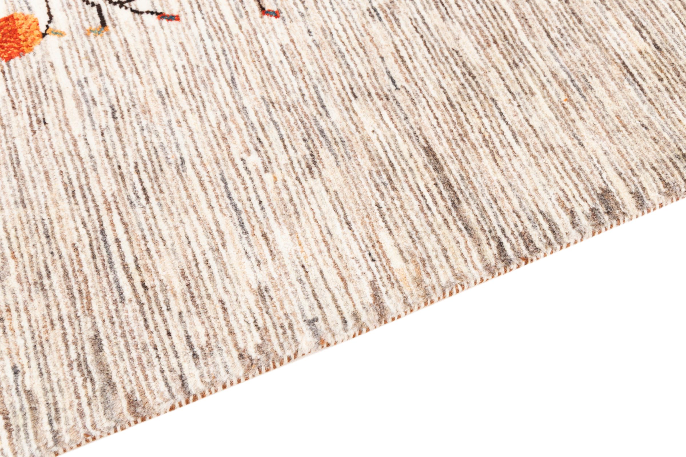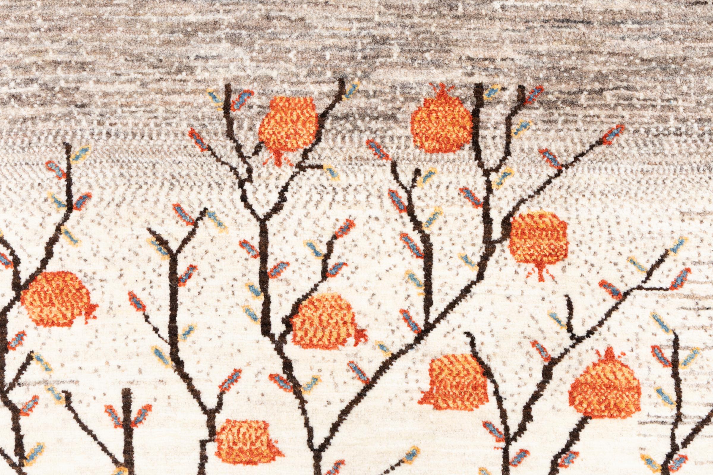 Een verfijning van de al bekende Gabbeh-tapijten: Dit is deze Perzische Gabbeh Loribaft. Het weet indruk te maken met zijn fijnere weefsel en prachtige ontwerp. Het werd door Loren in het zuiden van Perzië met de hand geknoopt van de beste handgesponnen schapenwol. Voor het verven van de wol worden uitsluitend pure plantaardige kleurstoffen gebruikt. Met dit vloerkleed haal je de hoogste standaard van een Gabbeh-tapijt in huis.
