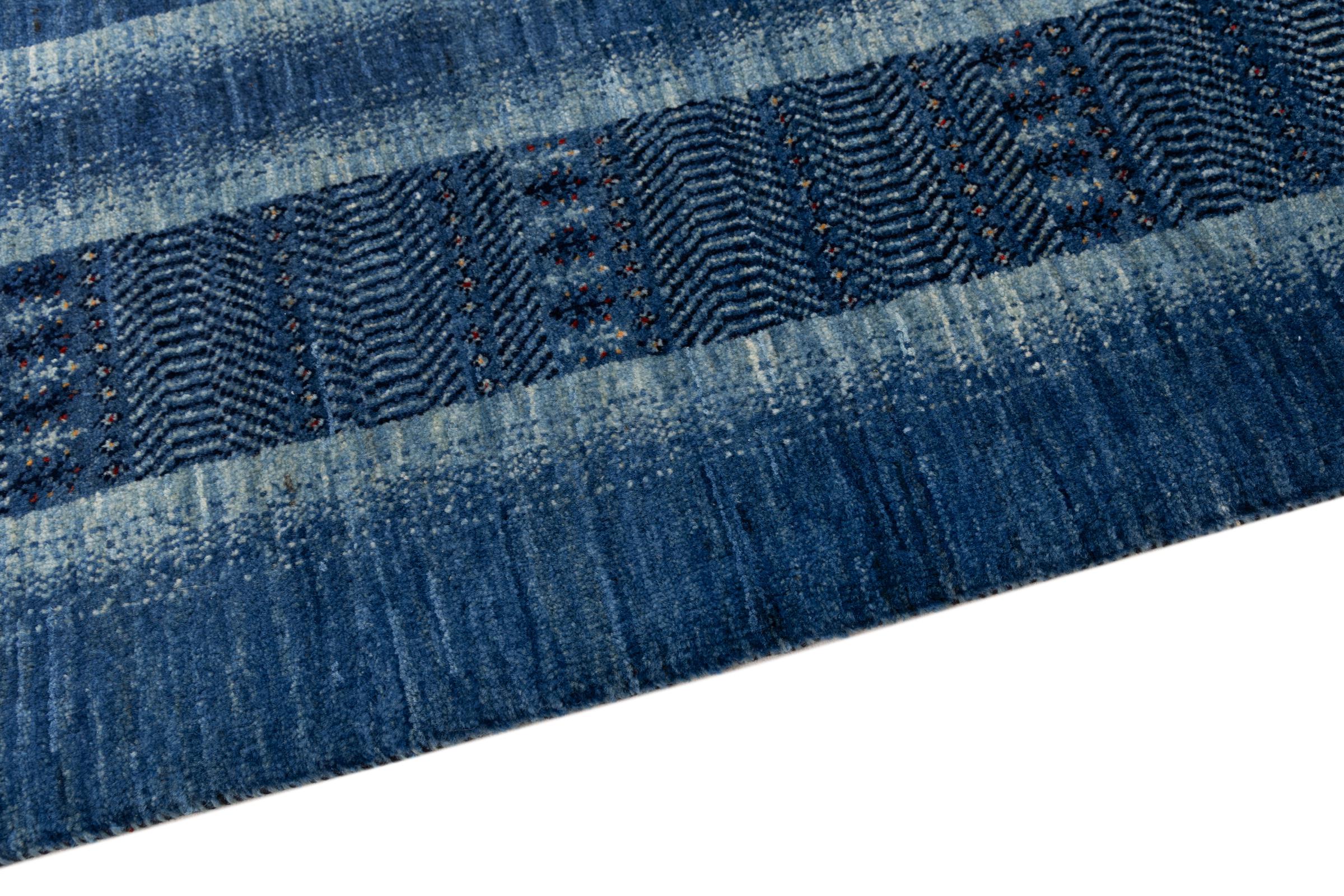 Dit prachtige tapijt is een Perzisch Gabbeh-tapijt en behoort daarom tot de hoogste kwaliteit Gabbeh-tapijten. De tapijten worden geknoopt door nomaden of semi-nomaden in Iran volgens traditioneel vakmanschap. De eenvoudige motieven en patronen zijn vooral geïnspireerd op de directe omgeving van de nomaden. Zo zijn er bijvoorbeeld kamelen, bomen of struiken te vinden op de traditionele tapijten. De Perzische Gabbeh-tapijten zijn gemaakt van wol van lokaal opgefokte kuddes schapen. De wol wordt dus meestal nog met de hand gesponnen. Elk van deze oosterse tapijten belichaamt dus een uniek karakter van de eeuwenoude cultuur.