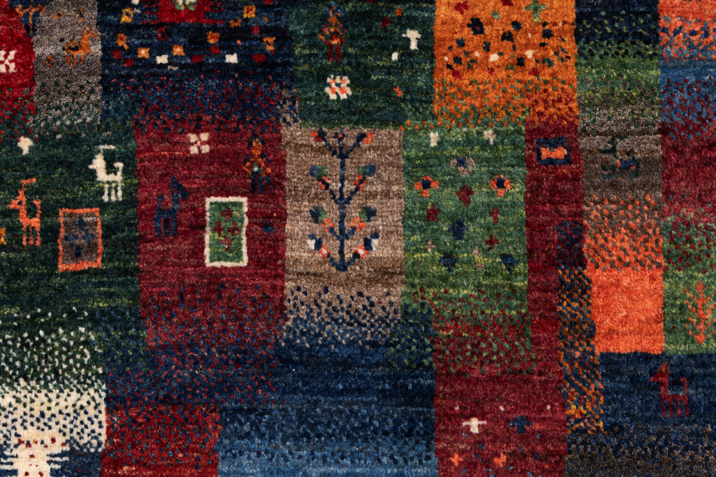 Een verfijning van de al bekende Gabbeh-tapijten: Dit is deze Perzische Gabbeh Loribaft. Het weet indruk te maken met zijn fijnere weefsel en prachtige ontwerp. Het werd door Loren in het zuiden van Perzië met de hand geknoopt van de beste handgesponnen schapenwol. Voor het verven van de wol worden uitsluitend pure plantaardige kleurstoffen gebruikt. Met dit vloerkleed haal je de hoogste standaard van een Gabbeh-tapijt in huis.