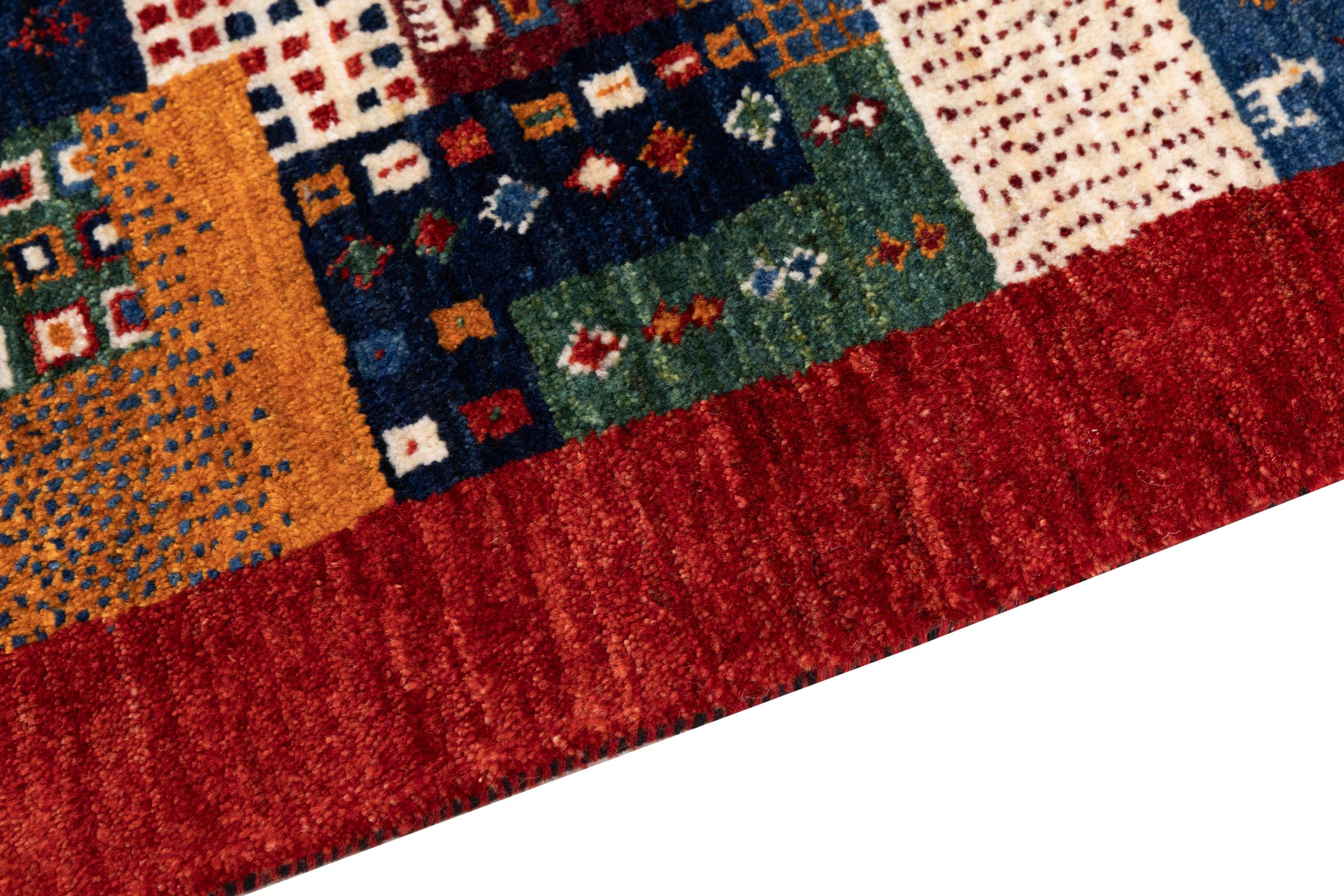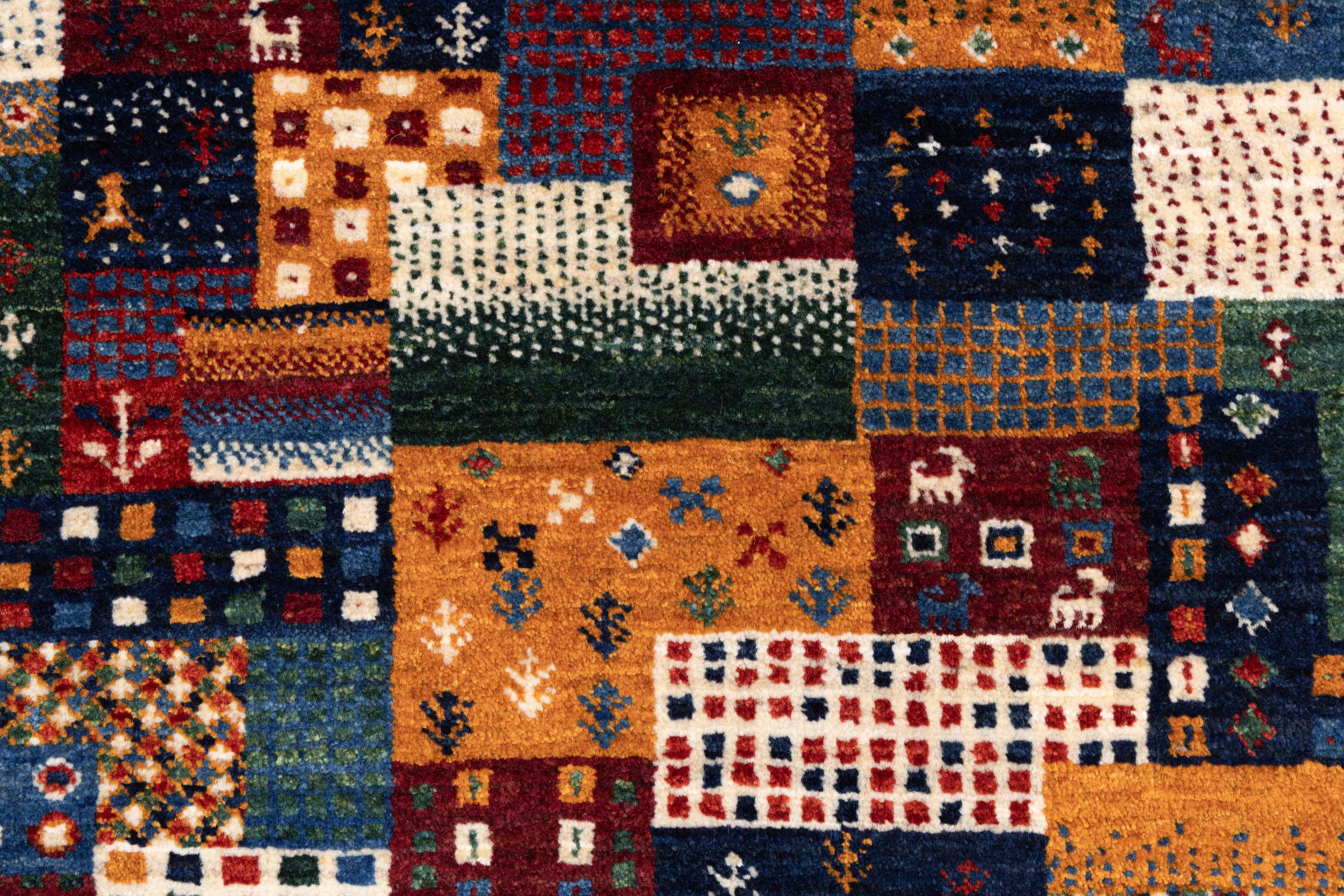 Een verfijning van de al bekende Gabbeh-tapijten: Dit is deze Perzische Gabbeh Loribaft. Het weet indruk te maken met zijn fijnere weefsel en prachtige ontwerp. Het werd door Loren in het zuiden van Perzië met de hand geknoopt van de beste handgesponnen schapenwol. Voor het verven van de wol worden uitsluitend pure plantaardige kleurstoffen gebruikt. Met dit vloerkleed haal je de hoogste standaard van een Gabbeh-tapijt in huis.