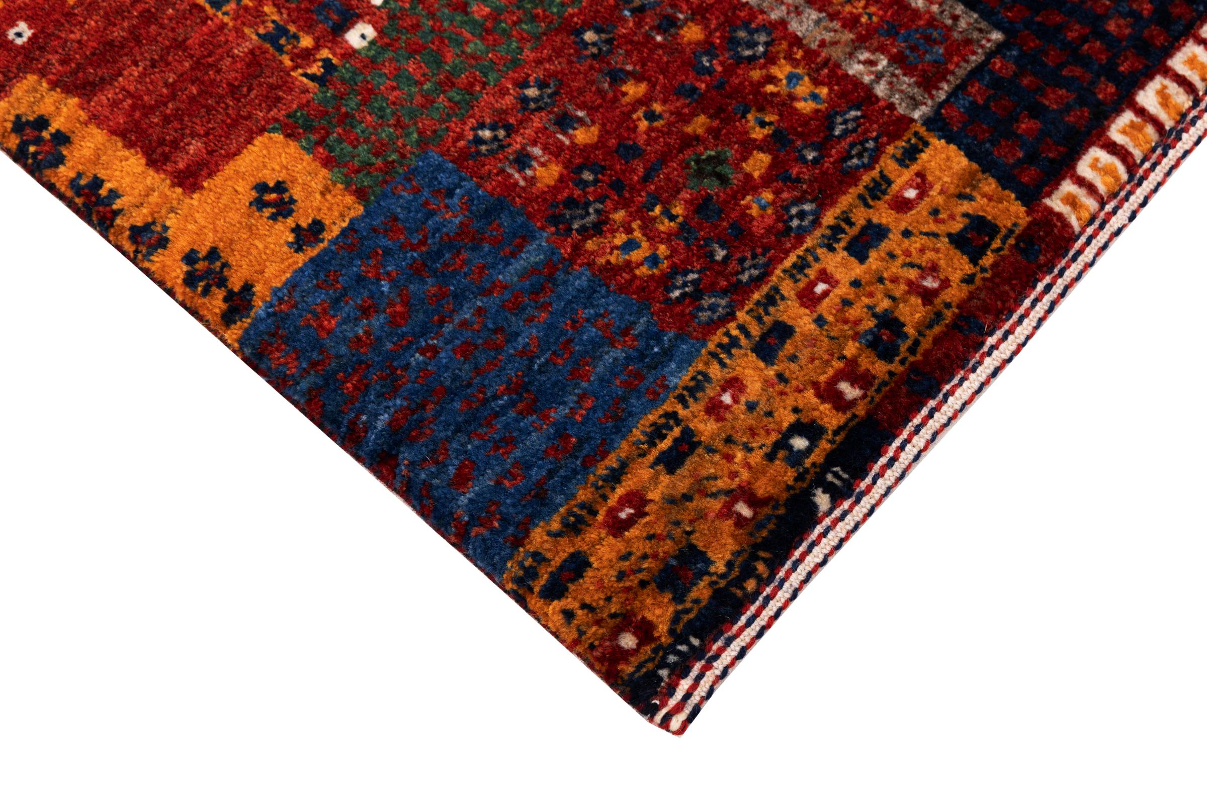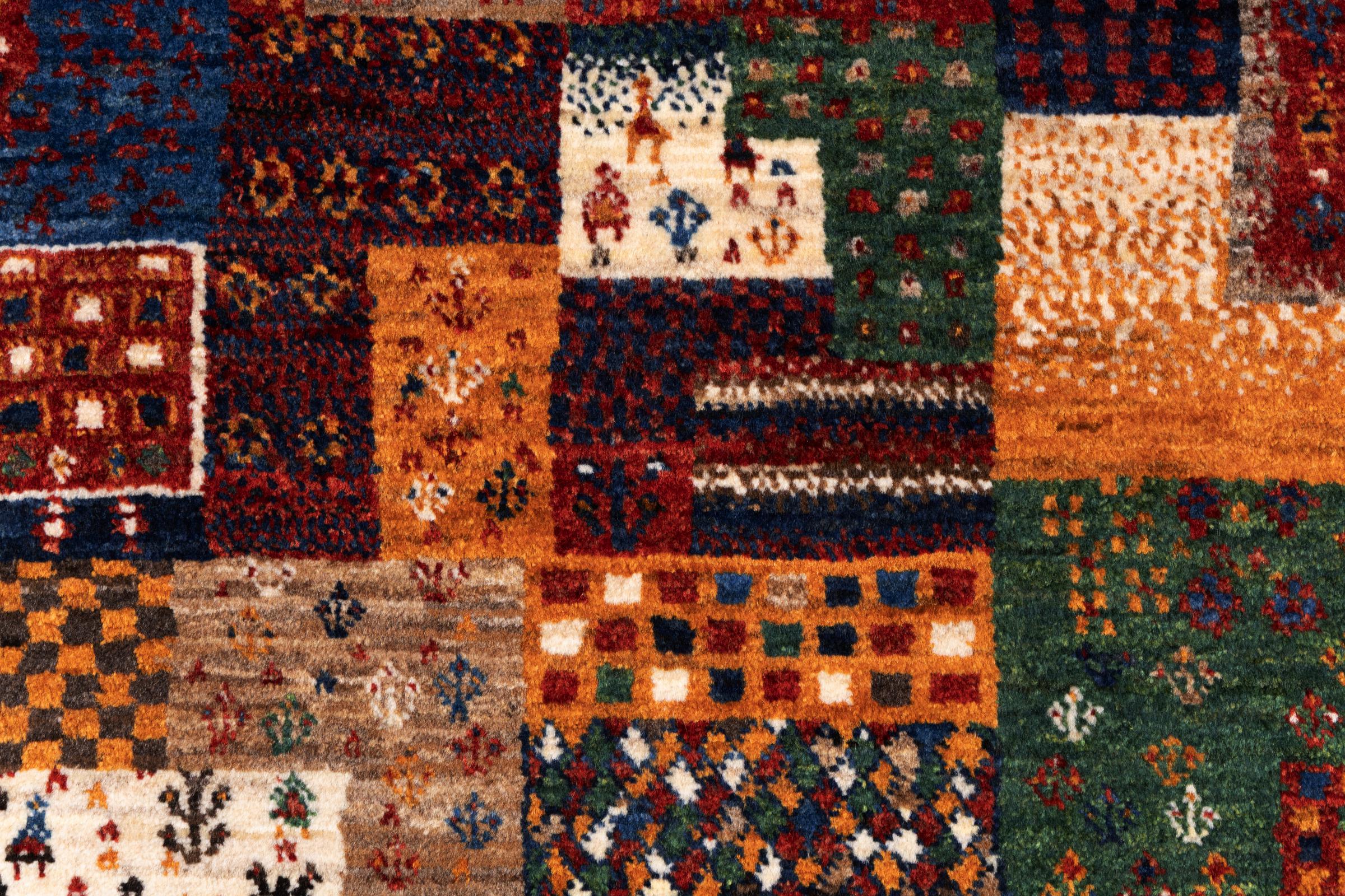 Een verfijning van de al bekende Gabbeh-tapijten: Dit is deze Perzische Gabbeh Loribaft. Het weet indruk te maken met zijn fijnere weefsel en prachtige ontwerp. Het werd door Loren in het zuiden van Perzië met de hand geknoopt van de beste handgesponnen schapenwol. Voor het verven van de wol worden uitsluitend pure plantaardige kleurstoffen gebruikt. Met dit vloerkleed haal je de hoogste standaard van een Gabbeh-tapijt in huis.