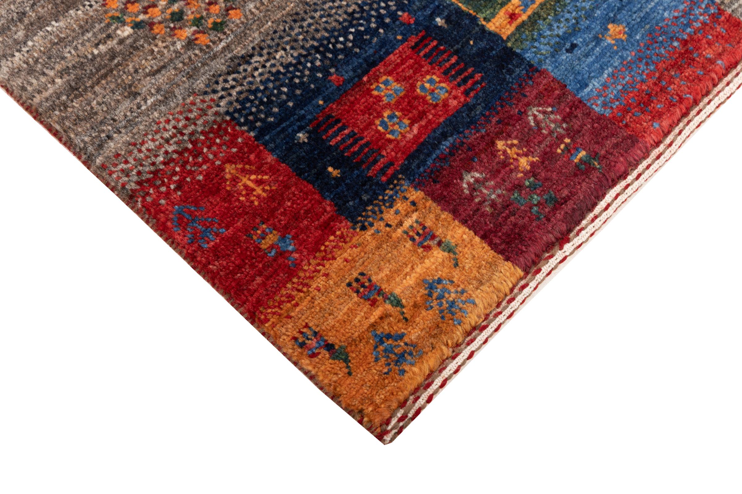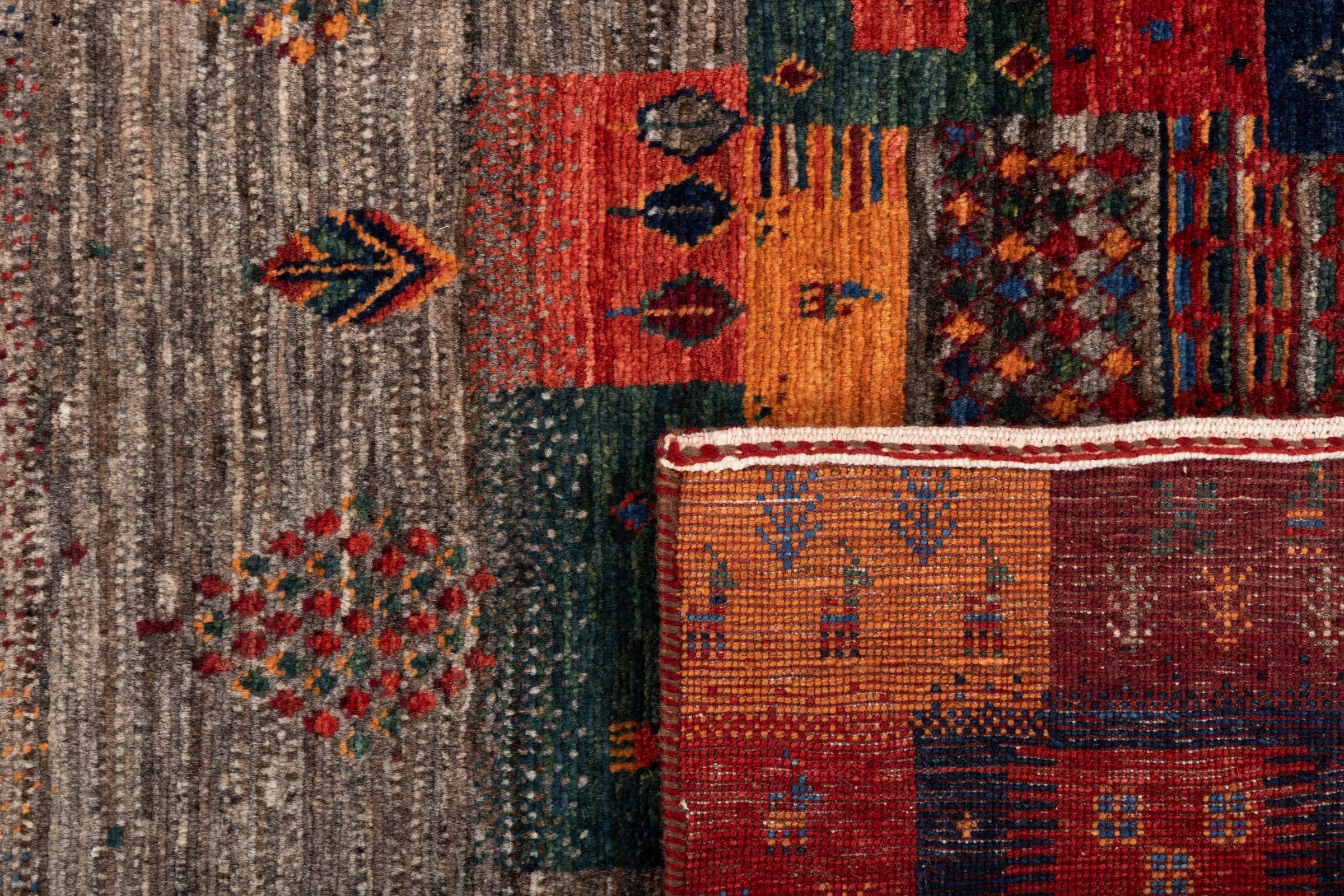 Een verfijning van de al bekende Gabbeh-tapijten: Dit is deze Perzische Gabbeh Loribaft. Het weet indruk te maken met zijn fijnere weefsel en prachtige ontwerp. Het werd door Loren in het zuiden van Perzië met de hand geknoopt van de beste handgesponnen schapenwol. Voor het verven van de wol worden uitsluitend pure plantaardige kleurstoffen gebruikt. Met dit vloerkleed haal je de hoogste standaard van een Gabbeh-tapijt in huis.
