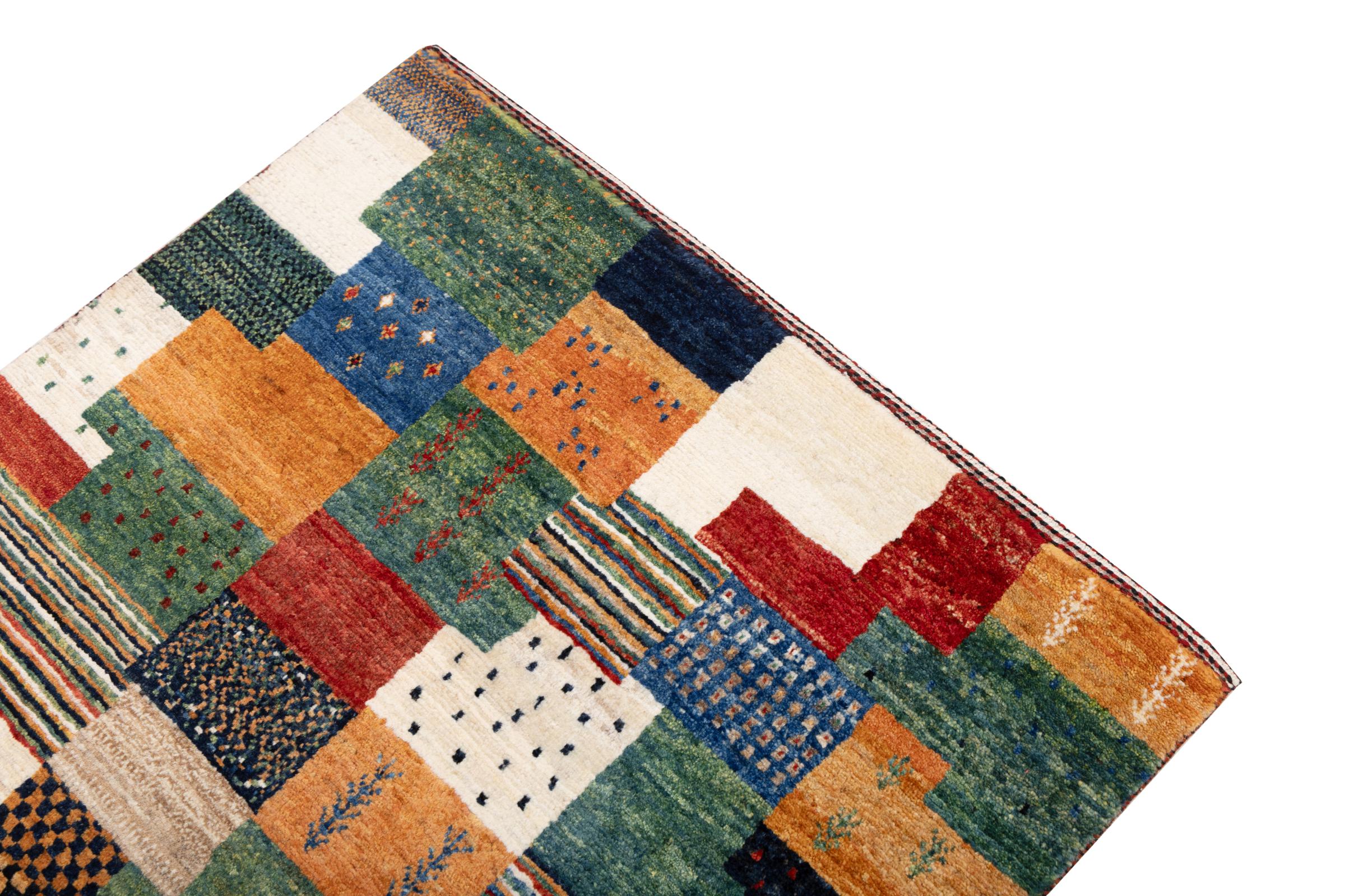 Dit prachtige tapijt is een Perzisch Gabbeh-tapijt en behoort daarom tot de hoogste kwaliteit Gabbeh-tapijten. De tapijten worden geknoopt door nomaden of semi-nomaden in Iran volgens traditioneel vakmanschap. De eenvoudige motieven en patronen zijn vooral geïnspireerd op de directe omgeving van de nomaden. Zo zijn er bijvoorbeeld kamelen, bomen of struiken te vinden op de traditionele tapijten. De Perzische Gabbeh-tapijten zijn gemaakt van wol van lokaal opgefokte kuddes schapen. De wol wordt dus meestal nog met de hand gesponnen. Elk van deze oosterse tapijten belichaamt dus een uniek karakter van de eeuwenoude cultuur.