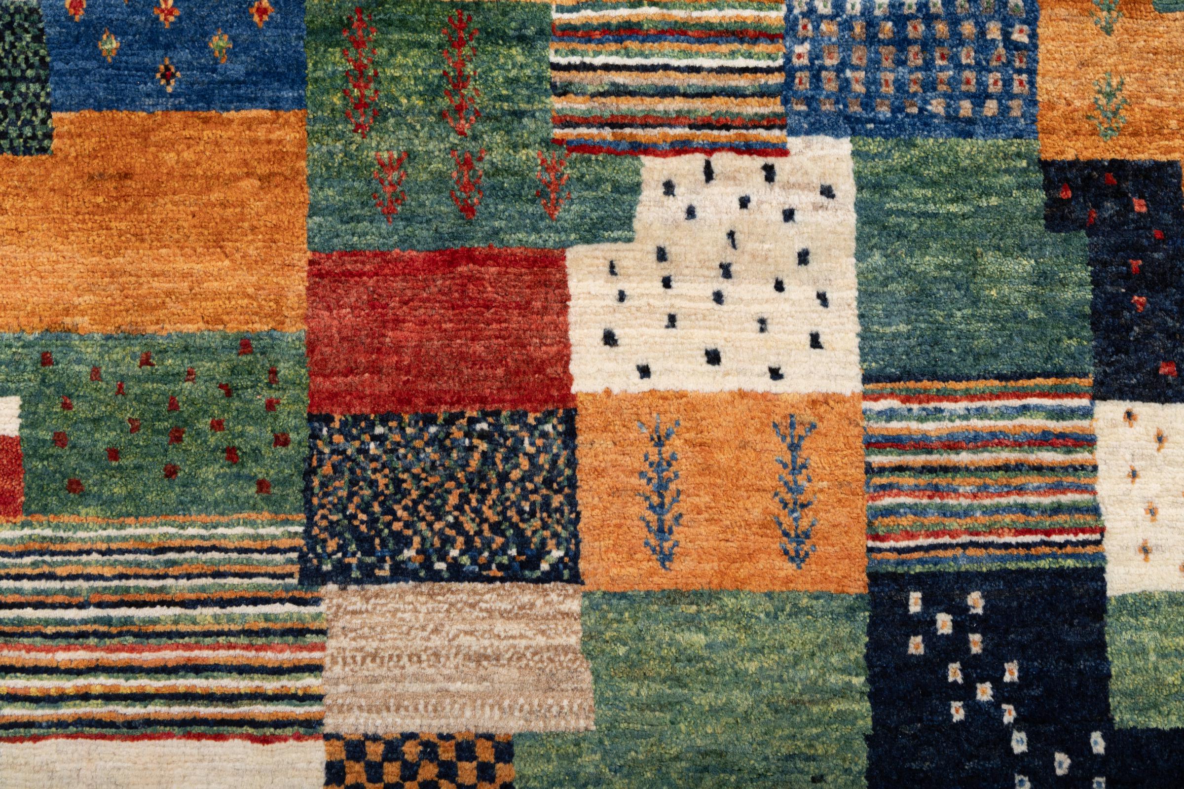 Een verfijning van de al bekende Gabbeh-tapijten: Dit is deze Perzische Gabbeh Loribaft. Het weet indruk te maken met zijn fijnere weefsel en prachtige ontwerp. Het werd door Loren in het zuiden van Perzië met de hand geknoopt van de beste handgesponnen schapenwol. Voor het verven van de wol worden uitsluitend pure plantaardige kleurstoffen gebruikt. Met dit vloerkleed haal je de hoogste standaard van een Gabbeh-tapijt in huis.