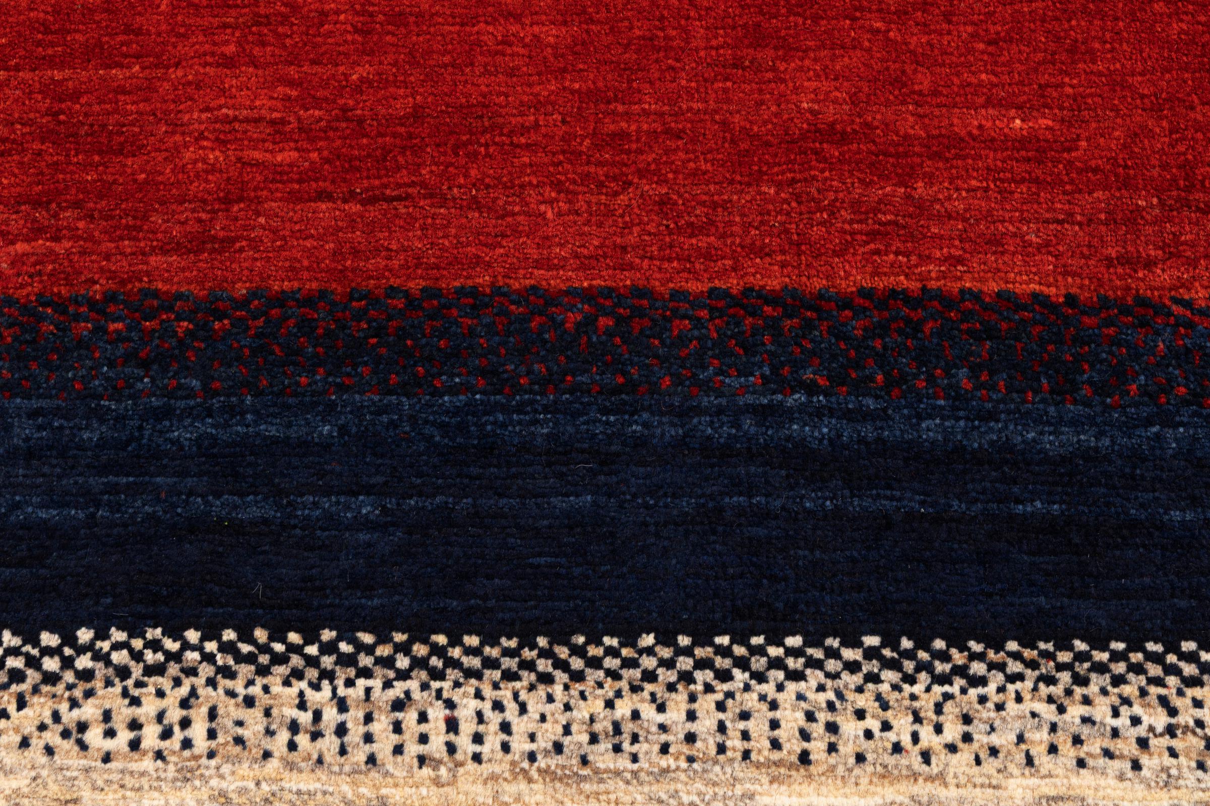 Een verfijning van de al bekende Gabbeh-tapijten: Dit is deze Perzische Gabbeh Loribaft. Het weet indruk te maken met zijn fijnere weefsel en prachtige ontwerp. Het werd door Loren in het zuiden van Perzië met de hand geknoopt van de beste handgesponnen schapenwol. Voor het verven van de wol worden uitsluitend pure plantaardige kleurstoffen gebruikt. Met dit vloerkleed haal je de hoogste standaard van een Gabbeh-tapijt in huis.