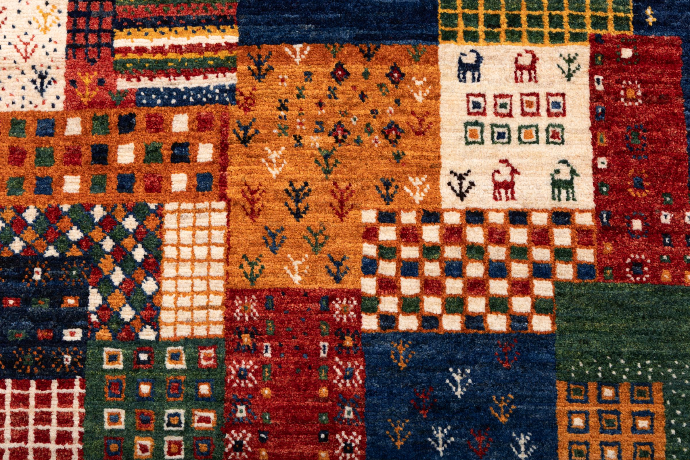 Dit prachtige tapijt is een Perzisch Gabbeh-tapijt en behoort daarom tot de hoogste kwaliteit Gabbeh-tapijten. De tapijten worden geknoopt door nomaden of semi-nomaden in Iran volgens traditioneel vakmanschap. De eenvoudige motieven en patronen zijn vooral geïnspireerd op de directe omgeving van de nomaden. Zo zijn er bijvoorbeeld kamelen, bomen of struiken te vinden op de traditionele tapijten. De Perzische Gabbeh-tapijten zijn gemaakt van wol van lokaal opgefokte kuddes schapen. De wol wordt dus meestal nog met de hand gesponnen. Elk van deze oosterse tapijten belichaamt dus een uniek karakter van de eeuwenoude cultuur.