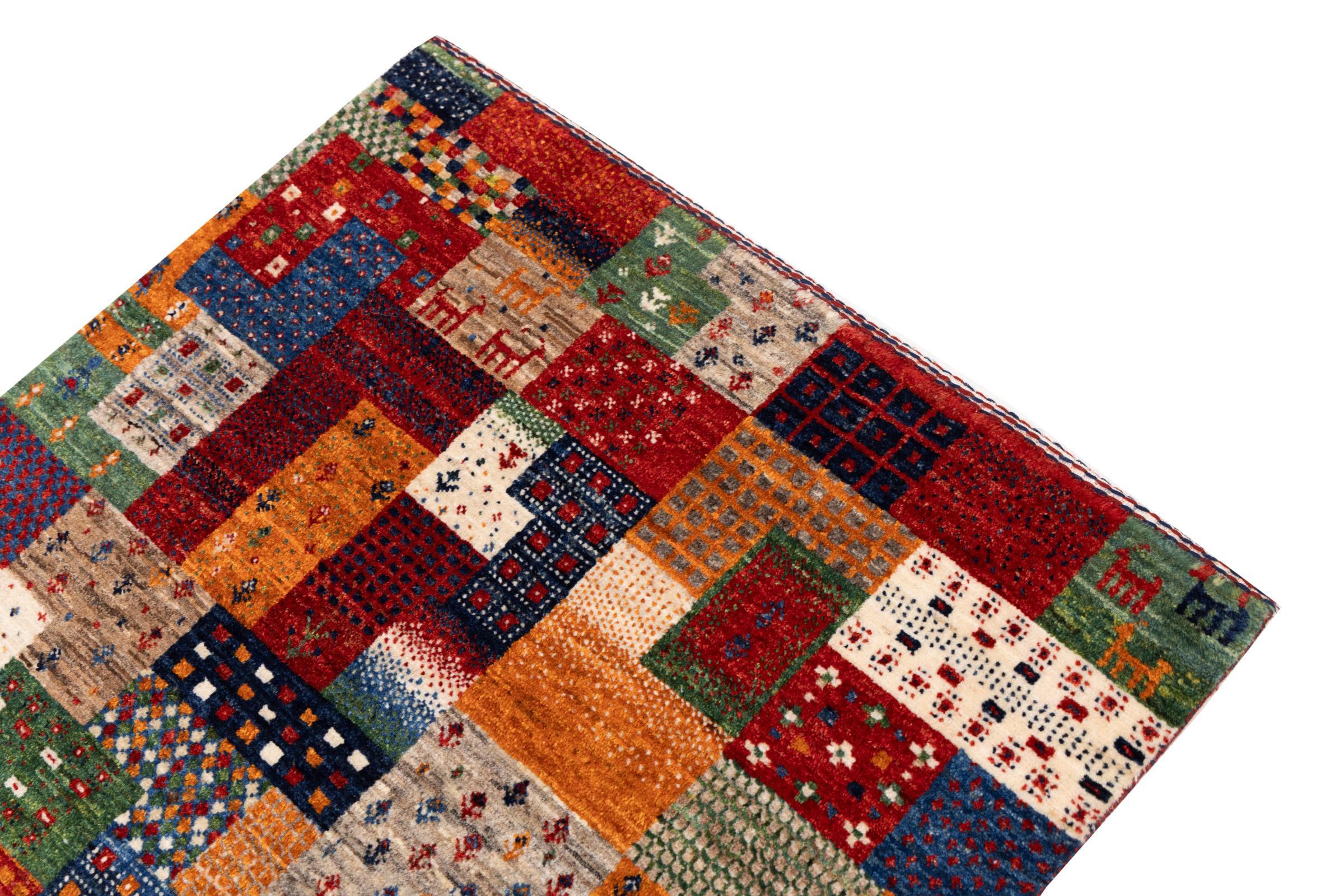 Een verfijning van de al bekende Gabbeh-tapijten: Dit is deze Perzische Gabbeh Loribaft. Het weet indruk te maken met zijn fijnere weefsel en prachtige ontwerp. Het werd door Loren in het zuiden van Perzië met de hand geknoopt van de beste handgesponnen schapenwol. Voor het verven van de wol worden uitsluitend pure plantaardige kleurstoffen gebruikt. Met dit vloerkleed haal je de hoogste standaard van een Gabbeh-tapijt in huis.