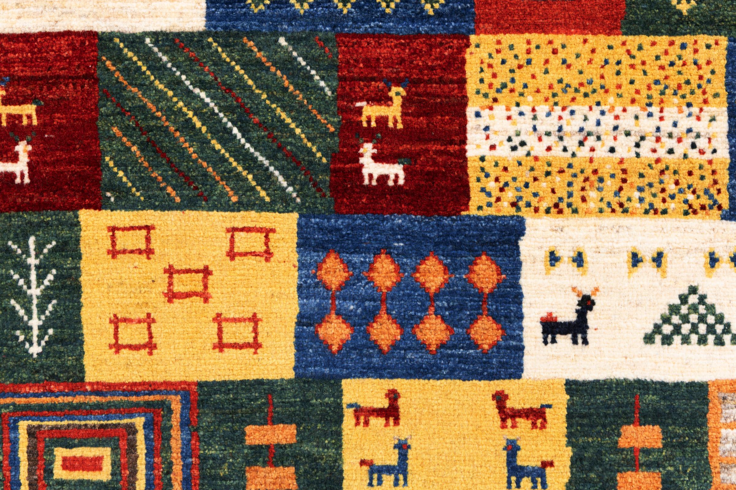 Dit prachtige tapijt is een Perzisch Gabbeh-tapijt en behoort daarom tot de hoogste kwaliteit Gabbeh-tapijten. De tapijten worden geknoopt door nomaden of semi-nomaden in Iran volgens traditioneel vakmanschap. De eenvoudige motieven en patronen zijn vooral geïnspireerd op de directe omgeving van de nomaden. Zo zijn er bijvoorbeeld kamelen, bomen of struiken te vinden op de traditionele tapijten. De Perzische Gabbeh-tapijten zijn gemaakt van wol van lokaal opgefokte kuddes schapen. De wol wordt dus meestal nog met de hand gesponnen. Elk van deze oosterse tapijten belichaamt dus een uniek karakter van de eeuwenoude cultuur.