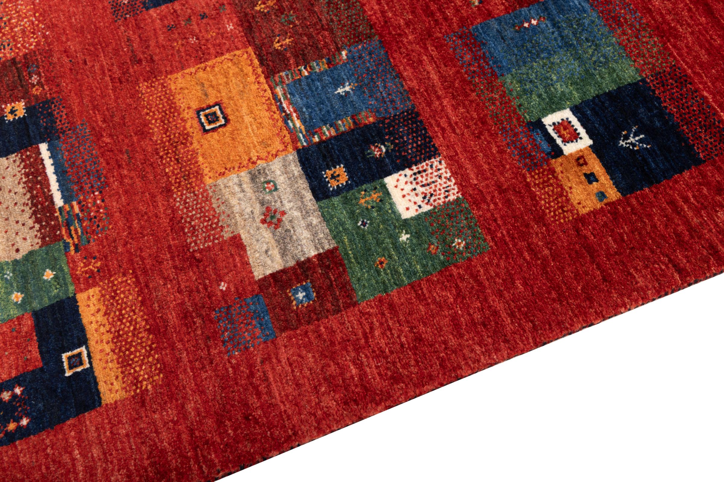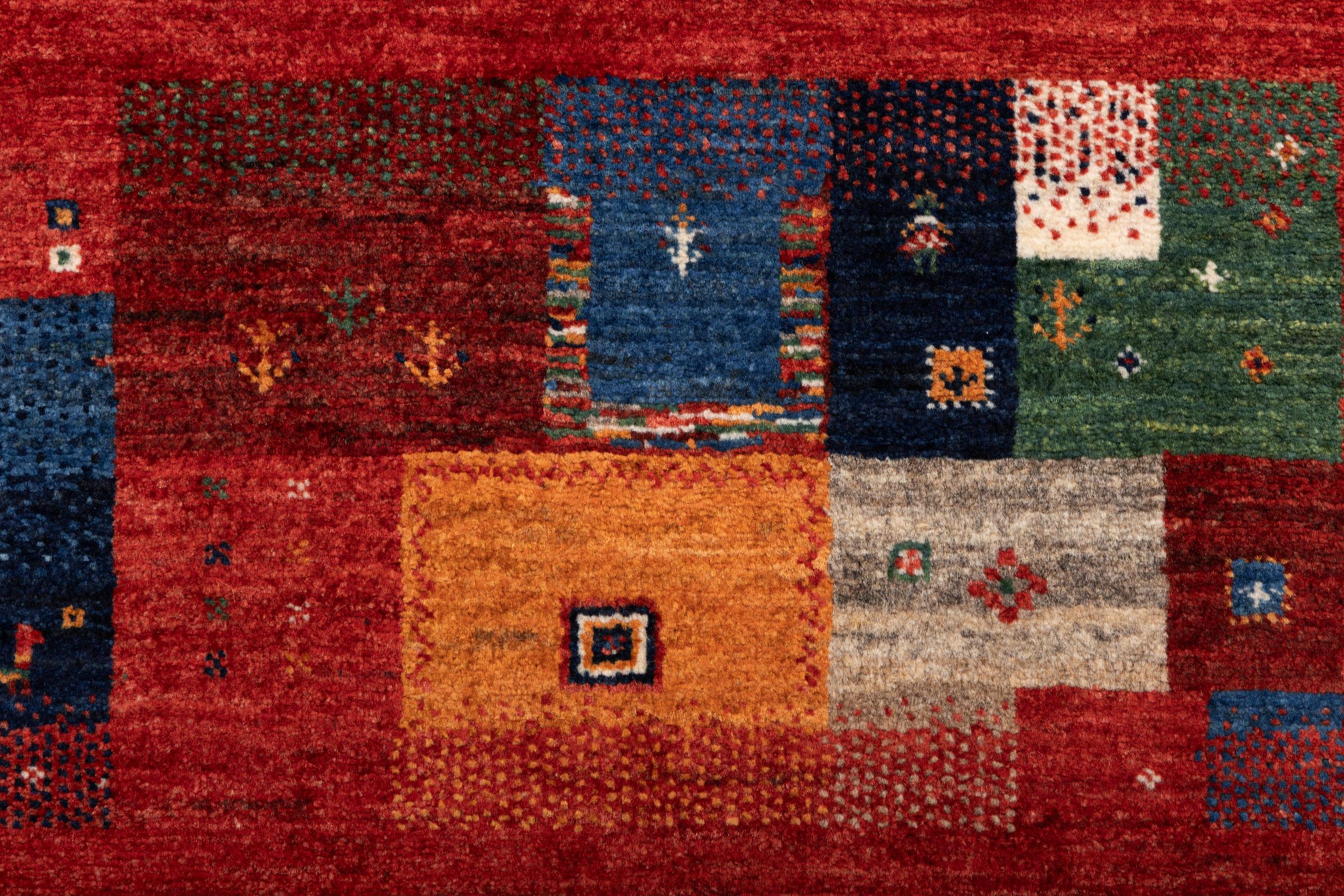 Een verfijning van de al bekende Gabbeh-tapijten: Dit is deze Perzische Gabbeh Loribaft. Het weet indruk te maken met zijn fijnere weefsel en prachtige ontwerp. Het werd door Loren in het zuiden van Perzië met de hand geknoopt van de beste handgesponnen schapenwol. Voor het verven van de wol worden uitsluitend pure plantaardige kleurstoffen gebruikt. Met dit vloerkleed haal je de hoogste standaard van een Gabbeh-tapijt in huis.