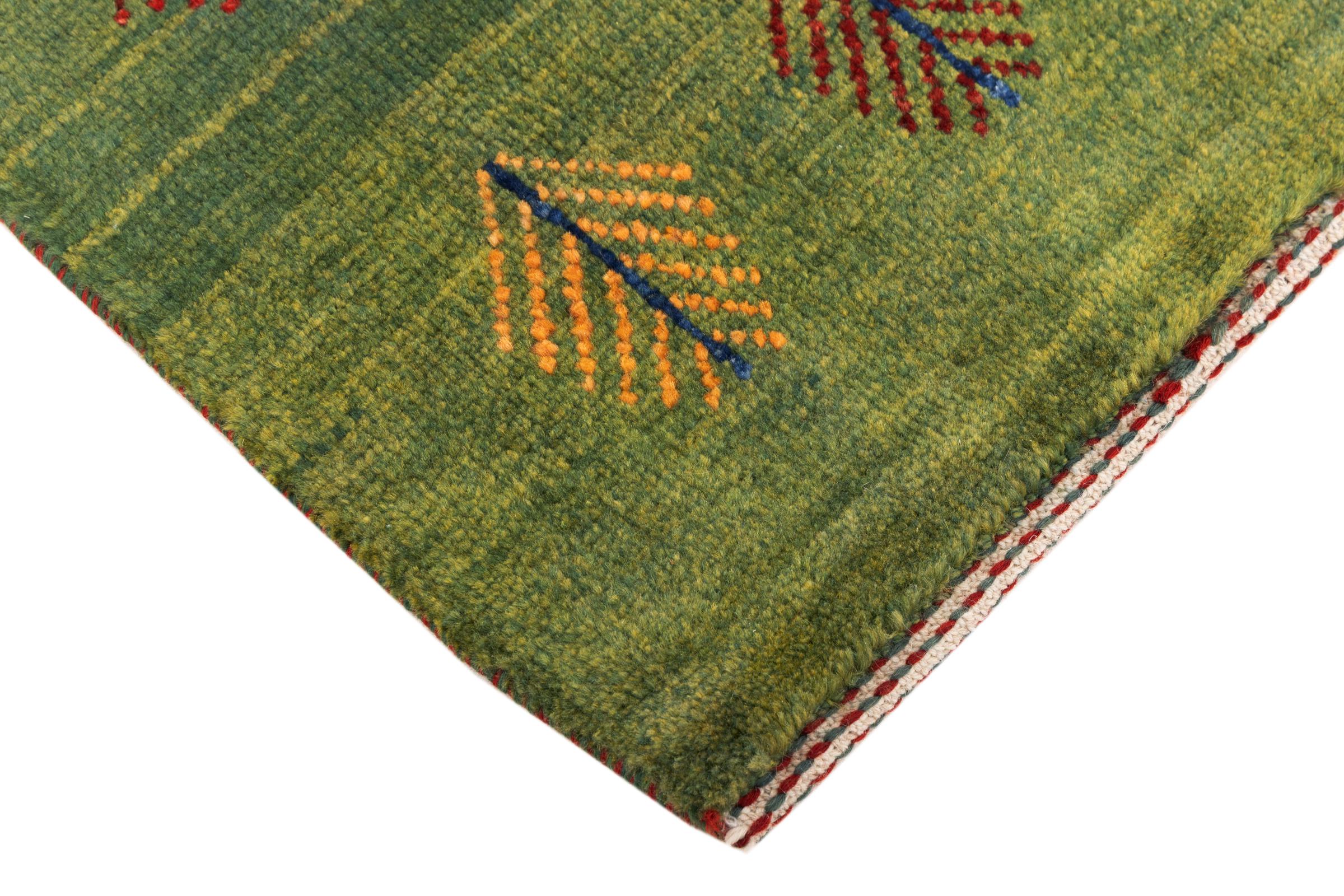 Een verfijning van de al bekende Gabbeh-tapijten: Dit is deze Perzische Gabbeh Loribaft. Het weet indruk te maken met zijn fijnere weefsel en prachtige ontwerp. Het werd door Loren in het zuiden van Perzië met de hand geknoopt van de beste handgesponnen schapenwol. Voor het verven van de wol worden uitsluitend pure plantaardige kleurstoffen gebruikt. Met dit vloerkleed haal je de hoogste standaard van een Gabbeh-tapijt in huis.