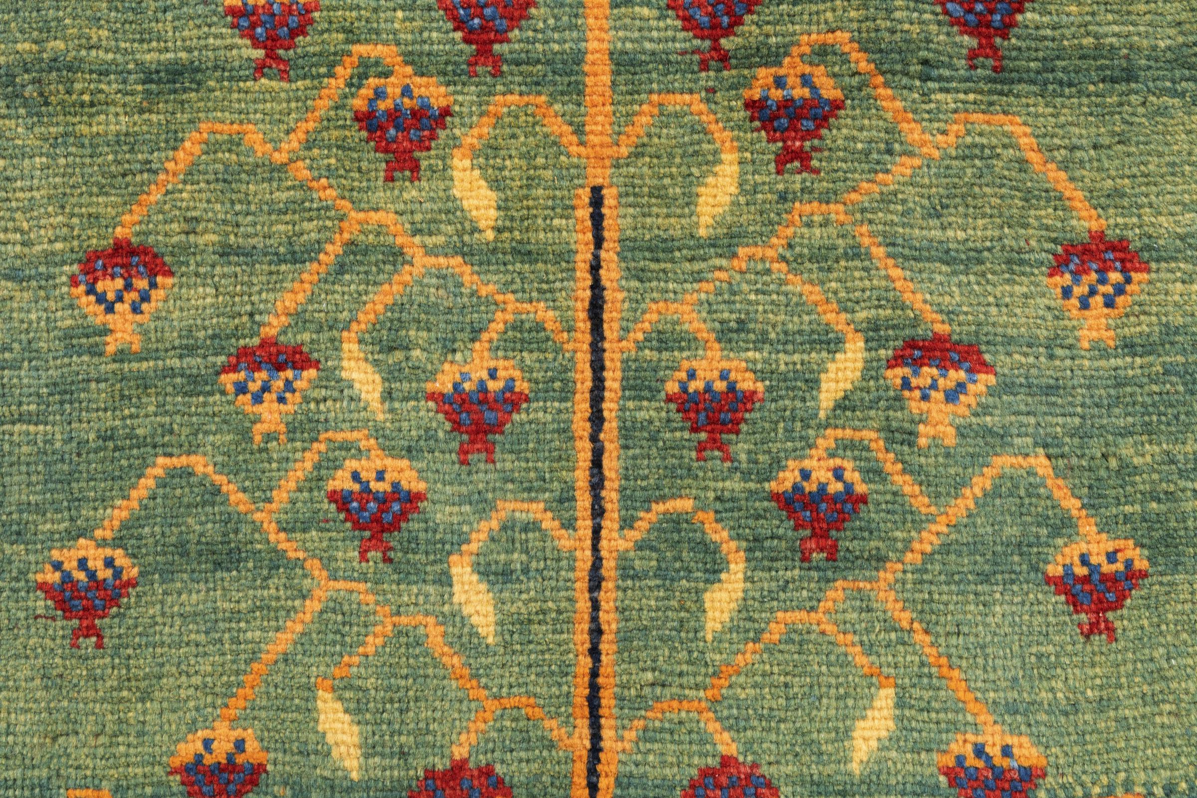 Dit tapijt is gemaakt van handgesponnen schapenwol van de hoogste kwaliteit. Vooral in Iran (voormalig Perzië), Afghanistan en Pakistan wordt de wol nog met de hand gesponnen voordat het eigenlijke knopen van het tapijt begint. Wol heeft zich door de eeuwen heen bewezen als een natuurlijk en extreem slijtvast materiaal. Het heeft onder andere vuilafstotende en warmte-isolerende eigenschappen. Tegelijkertijd is wol onvergelijkbaar zacht en heeft het een natuurlijke glans.
