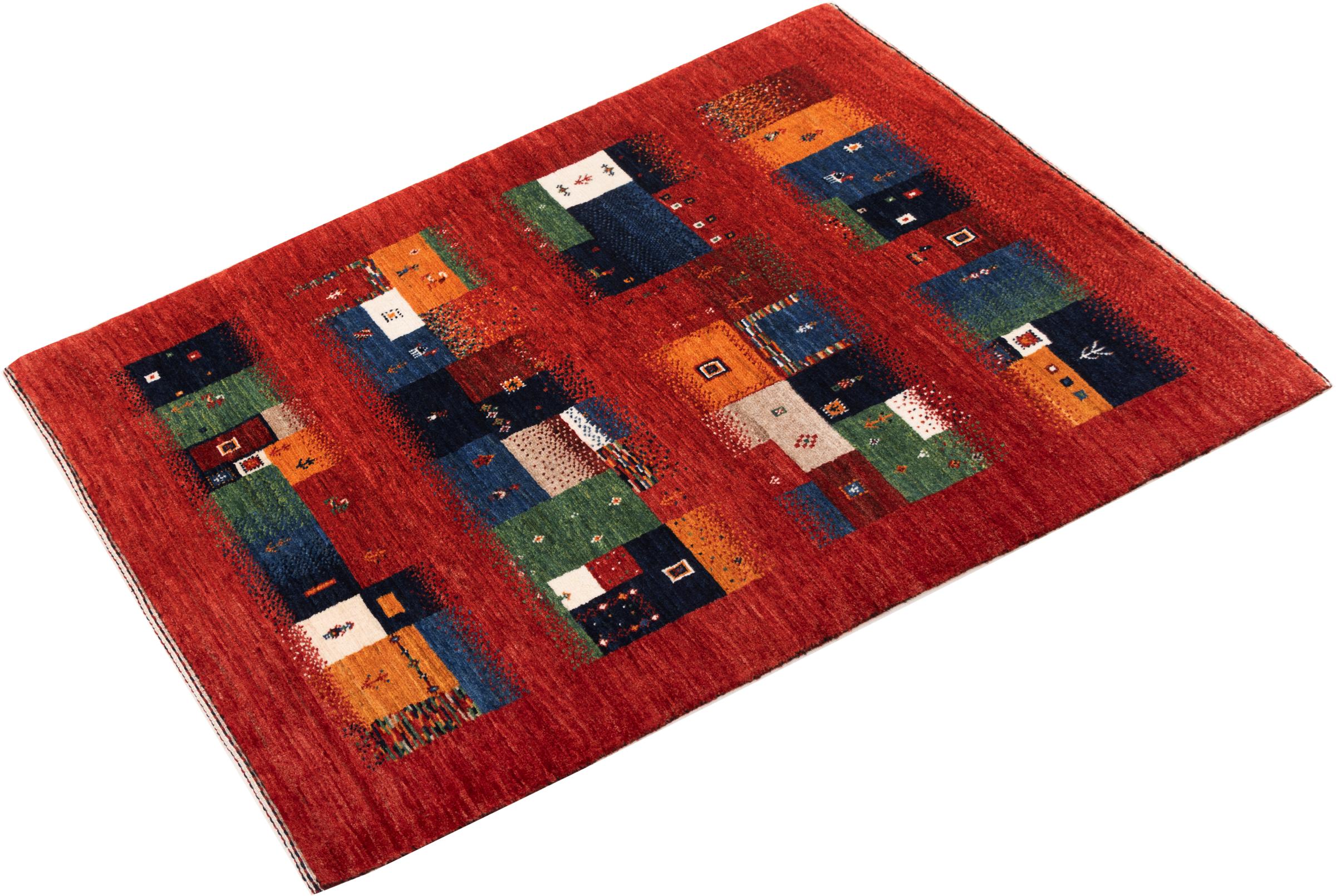 Een verfijning van de al bekende Gabbeh-tapijten: Dit is deze Perzische Gabbeh Loribaft. Het weet indruk te maken met zijn fijnere weefsel en prachtige ontwerp. Het werd door Loren in het zuiden van Perzië met de hand geknoopt van de beste handgesponnen schapenwol. Voor het verven van de wol worden uitsluitend pure plantaardige kleurstoffen gebruikt. Met dit vloerkleed haal je de hoogste standaard van een Gabbeh-tapijt in huis.